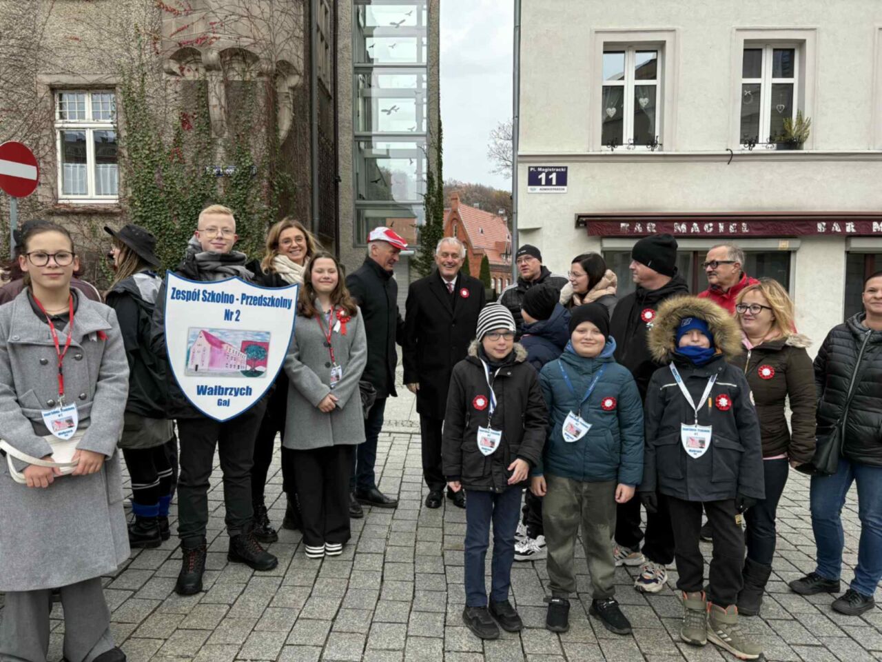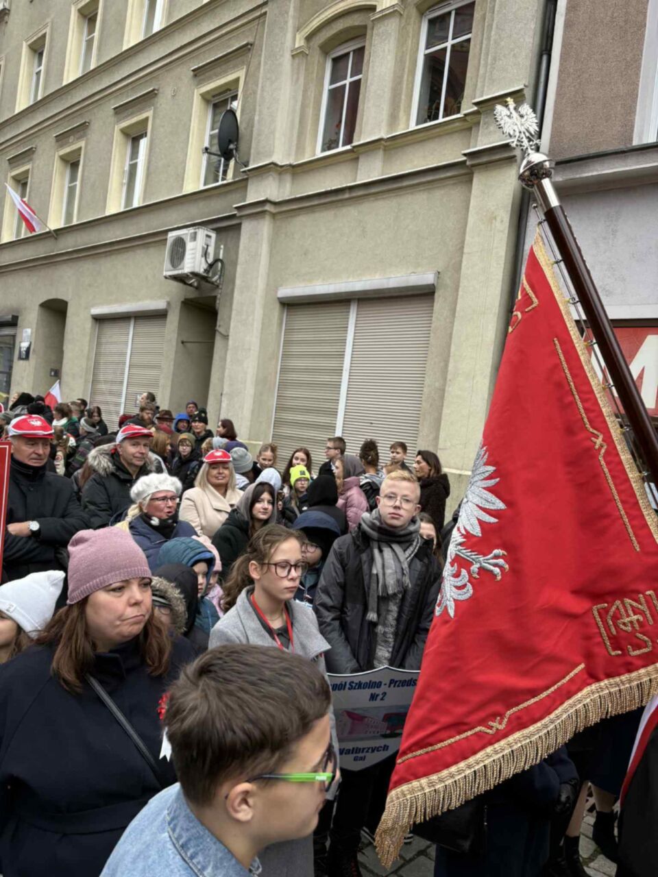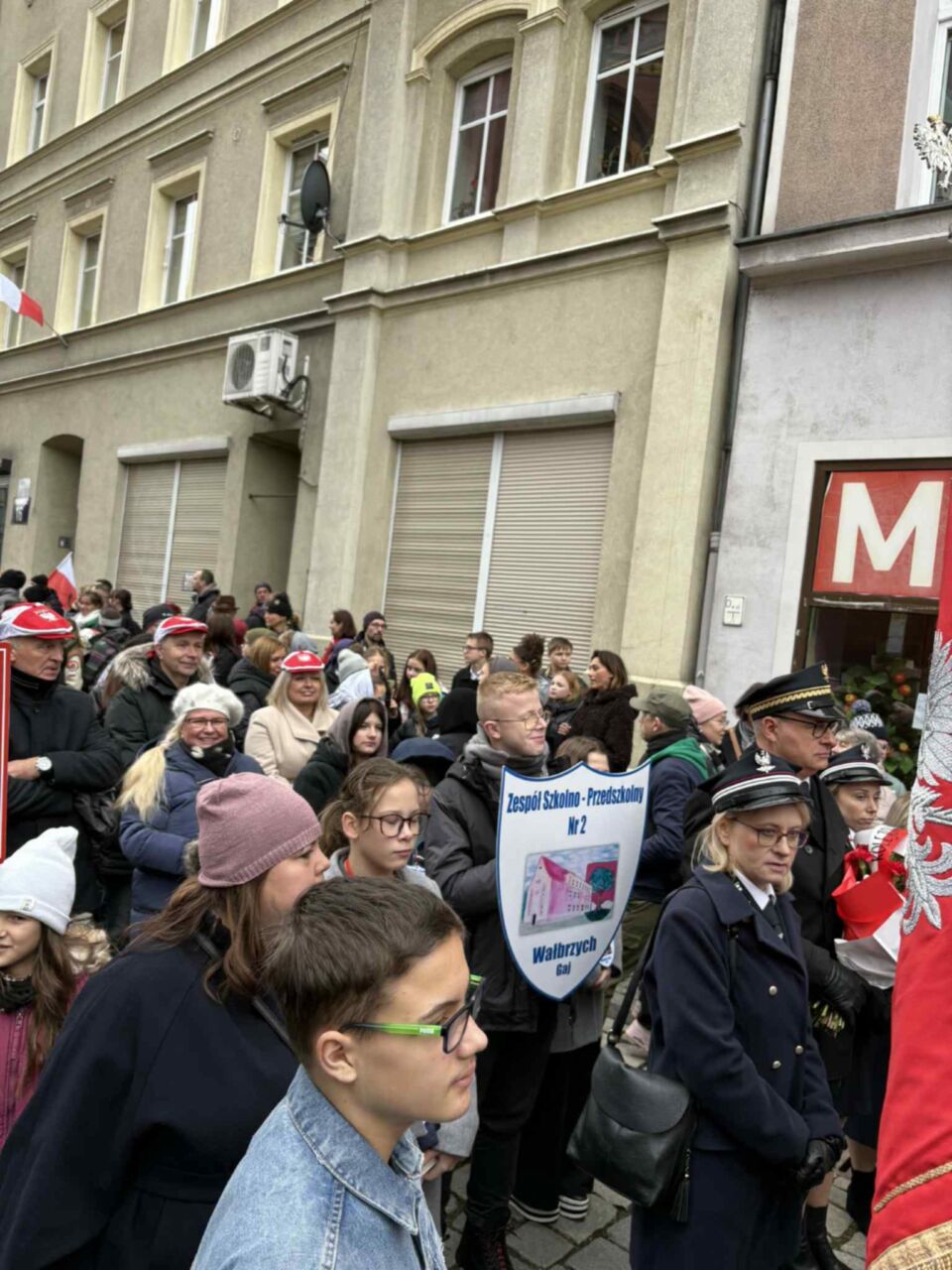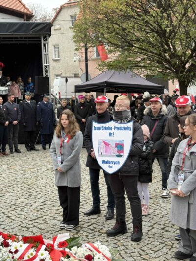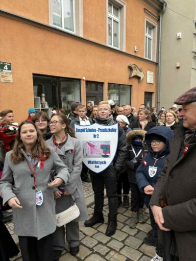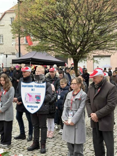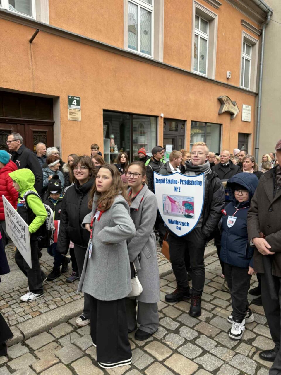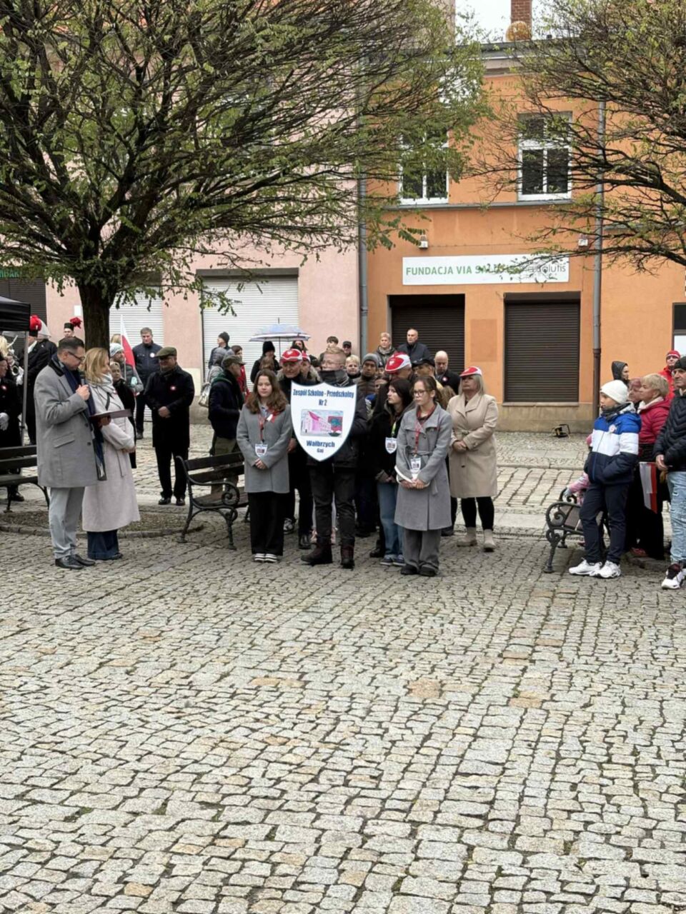 11 listopada w Wałbrzychu uczniowie i nauczyciele naszej szkoły wzięli udział w uroczystych obchodach Narodowego Święta Niepodległości. O godzinie 10.30 na Placu Magistrackim zebrały się delegacje szkół, instytucji oraz mieszkańcy miasta. Następnie uczestnicy w uroczystym pochodzie przemaszerowali do Kolegiaty św. Aniołów Stróżów, gdzie odprawiono mszę świętą w intencji Ojczyzny.