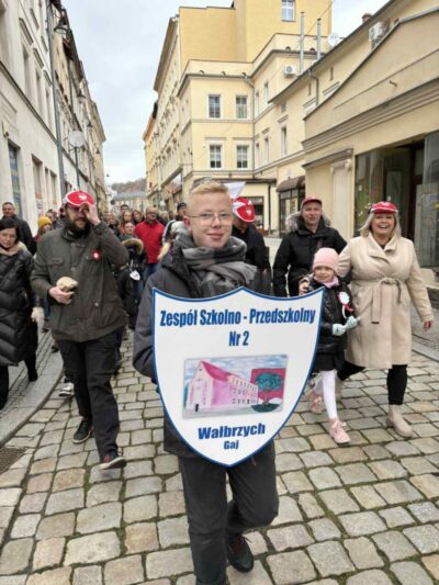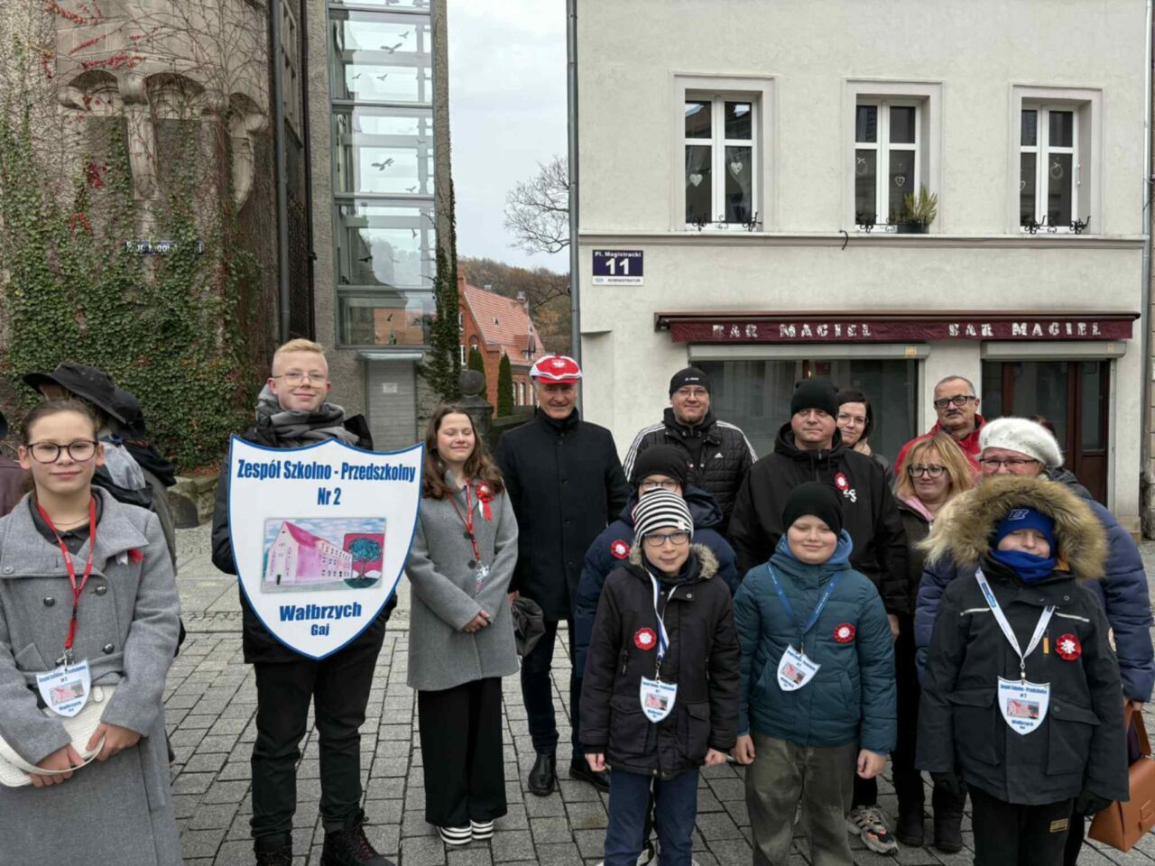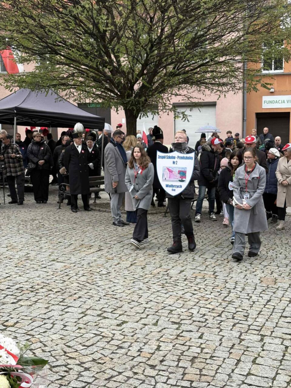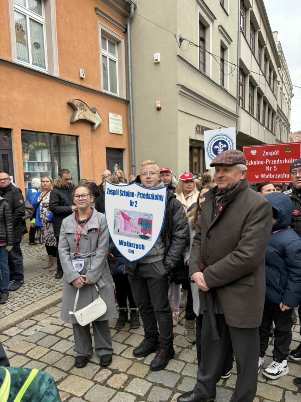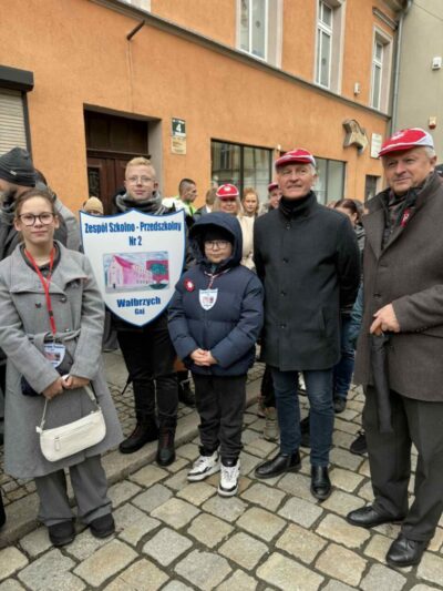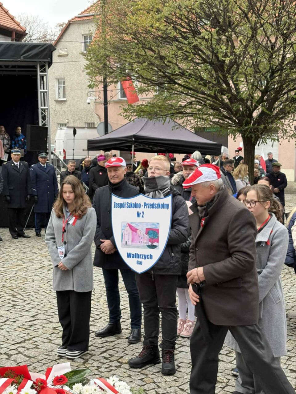 11 listopada w Wałbrzychu uczniowie i nauczyciele naszej szkoły wzięli udział w uroczystych obchodach Narodowego Święta Niepodległości. O godzinie 10.30 na Placu Magistrackim zebrały się delegacje szkół, instytucji oraz mieszkańcy miasta. Następnie uczestnicy w uroczystym pochodzie przemaszerowali do Kolegiaty św. Aniołów Stróżów, gdzie odprawiono mszę świętą w intencji Ojczyzny.