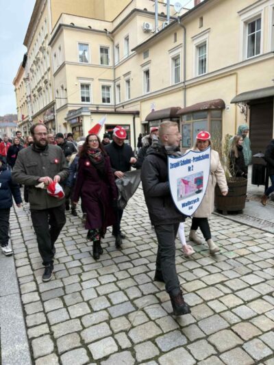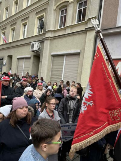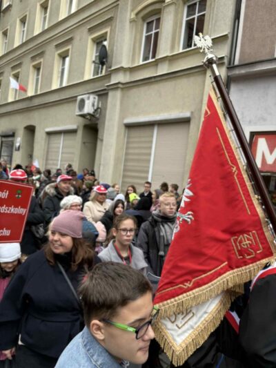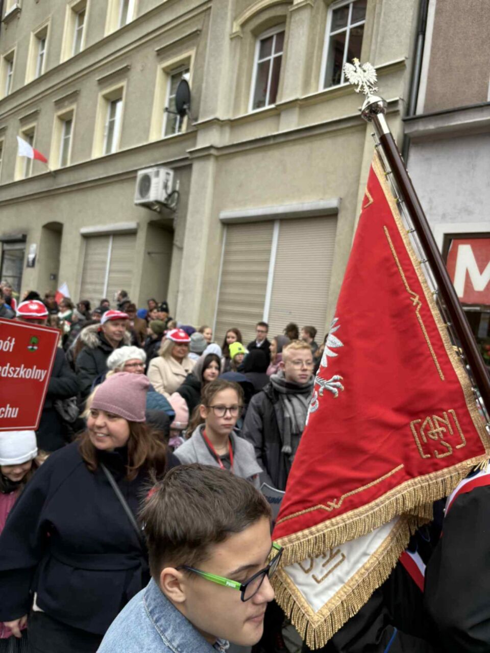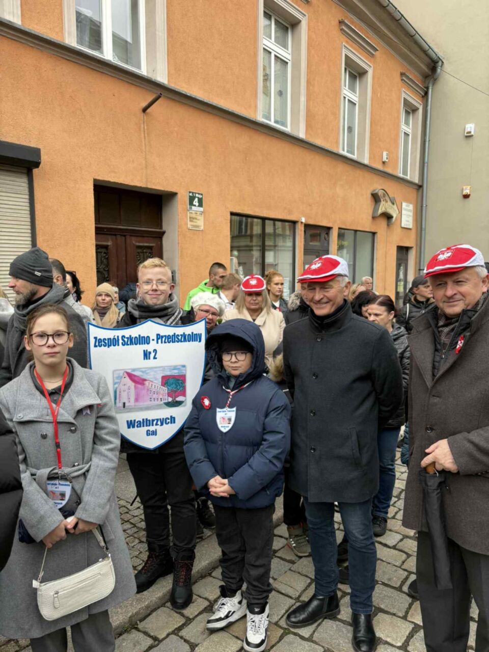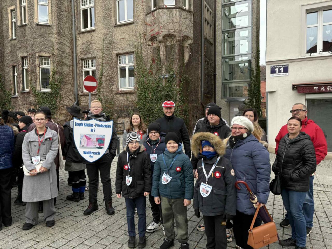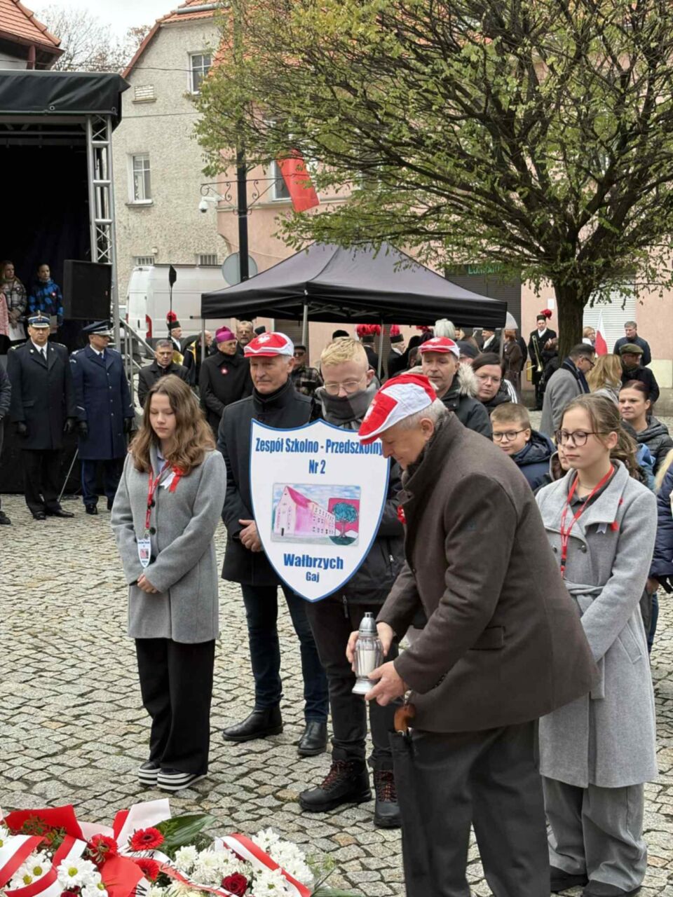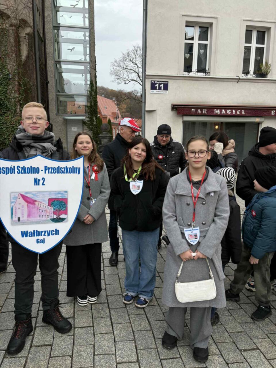 11 listopada w Wałbrzychu uczniowie i nauczyciele naszej szkoły wzięli udział w uroczystych obchodach Narodowego Święta Niepodległości. O godzinie 10.30 na Placu Magistrackim zebrały się delegacje szkół, instytucji oraz mieszkańcy miasta. Następnie uczestnicy w uroczystym pochodzie przemaszerowali do Kolegiaty św. Aniołów Stróżów, gdzie odprawiono mszę świętą w intencji Ojczyzny.