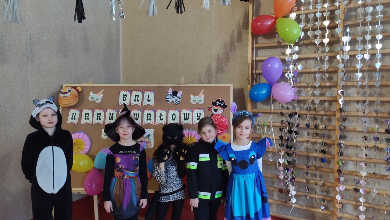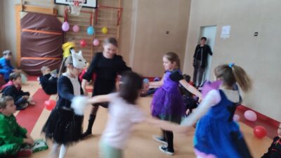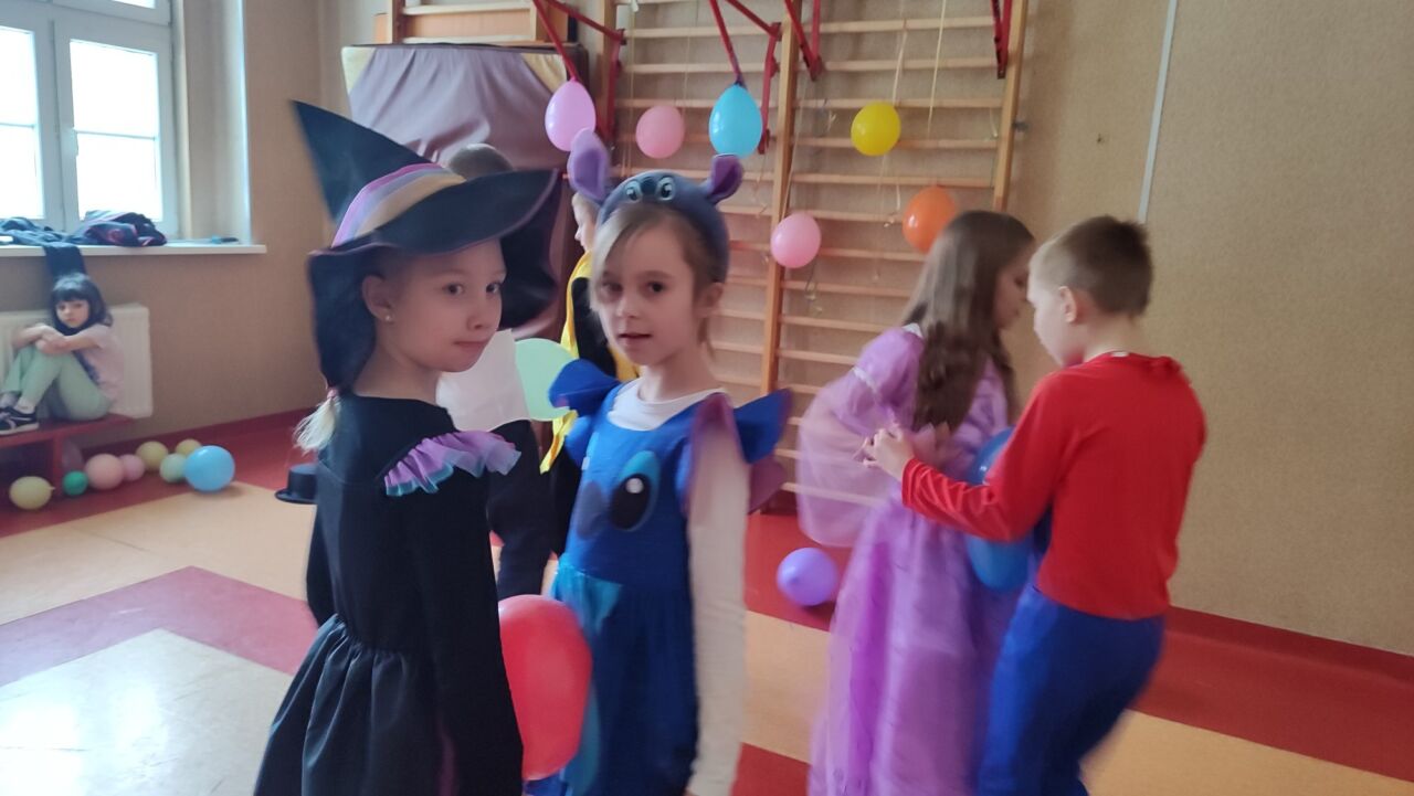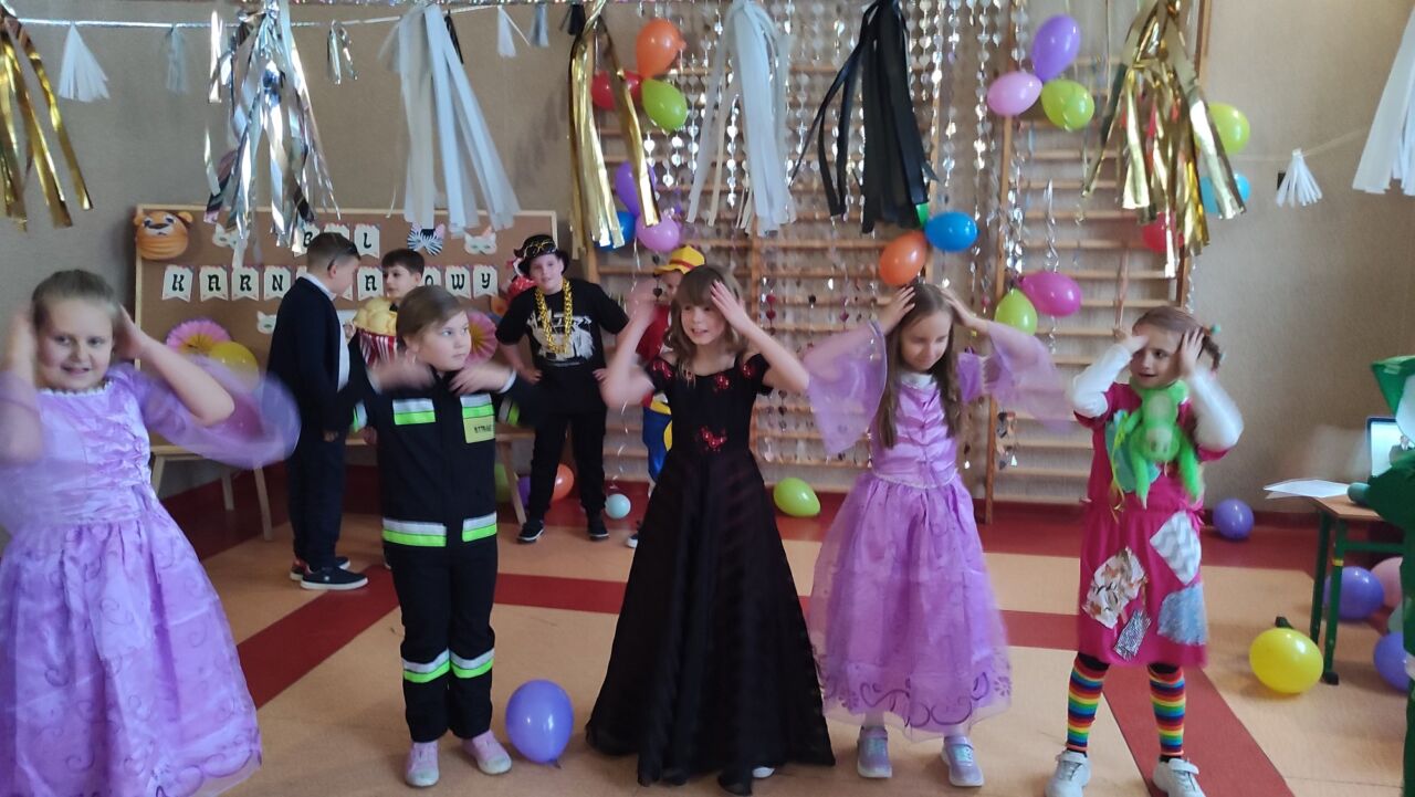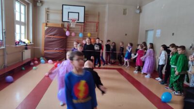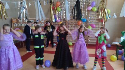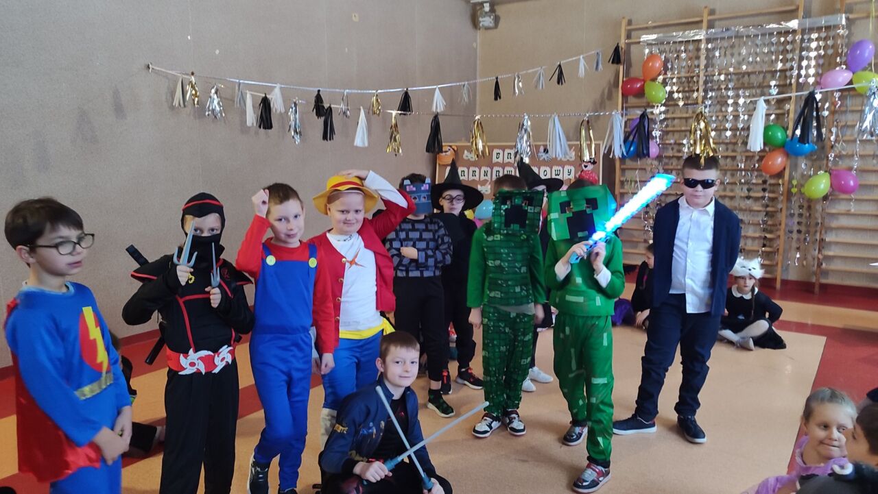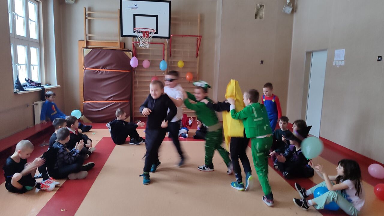 Uczniowie klas 1-3 zamienili się w super bohaterów, księżniczki, zwierzątka i inne bajkowe postacie, by wspólnie świętować Bal Karnawałowy. Kolorowe dekoracje, błyszczące balony i skoczna muzyka sprawiły, że sala zamieniła się w prawdziwą krainę radości. Dzieci chętnie brały udział w zabawach, prezentując swoje fantastyczne stroje oraz ukryte talenty taneczne. Nie zabrakło też słodkiego poczęstunku, który dodał energii do dalszej zabawy!