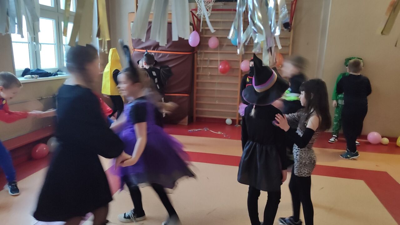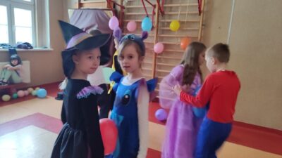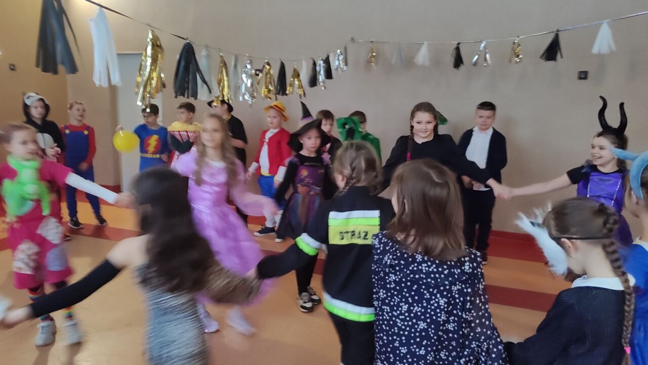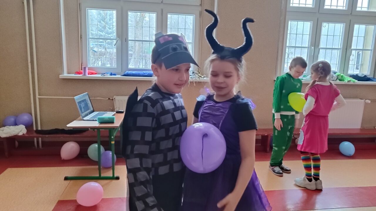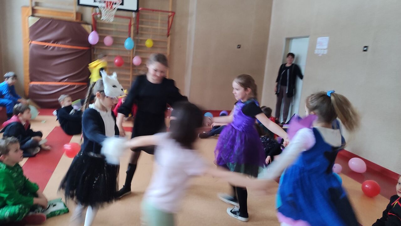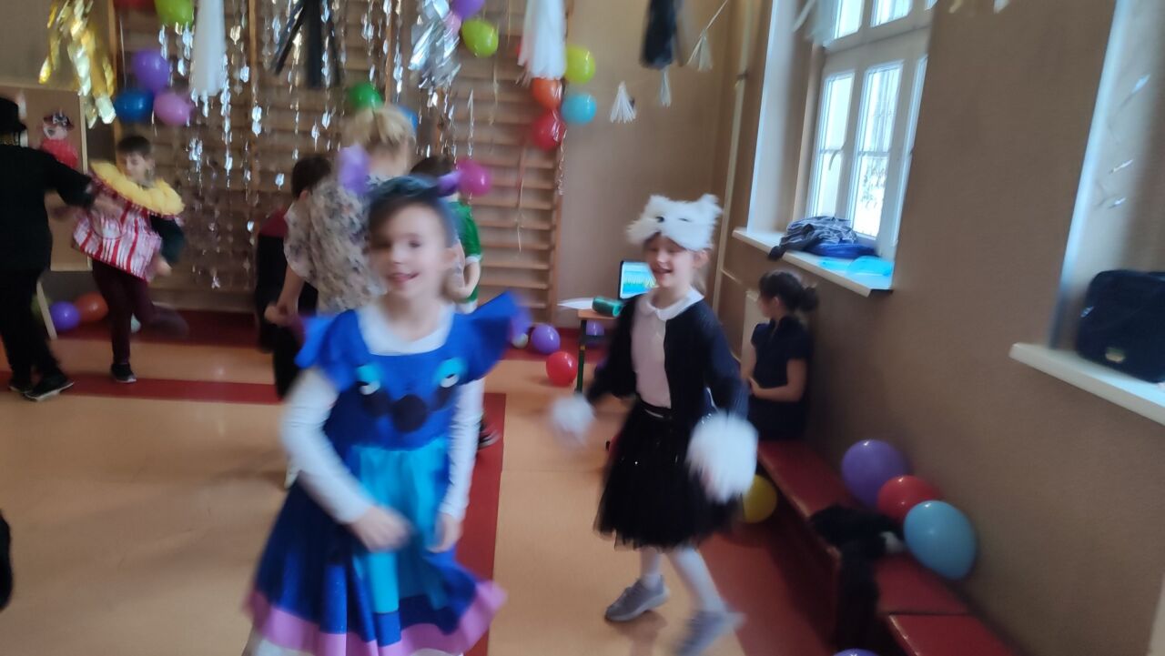 Uczniowie klas 1-3 zamienili się w super bohaterów, księżniczki, zwierzątka i inne bajkowe postacie, by wspólnie świętować Bal Karnawałowy. Kolorowe dekoracje, błyszczące balony i skoczna muzyka sprawiły, że sala zamieniła się w prawdziwą krainę radości. Dzieci chętnie brały udział w zabawach, prezentując swoje fantastyczne stroje oraz ukryte talenty taneczne. Nie zabrakło też słodkiego poczęstunku, który dodał energii do dalszej zabawy!