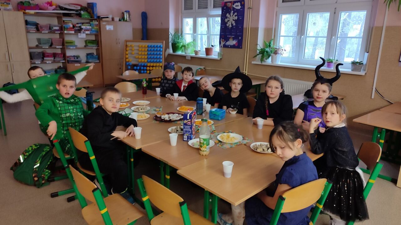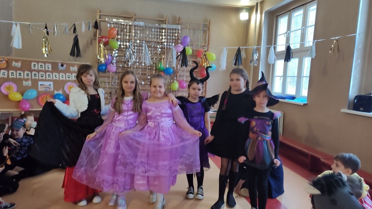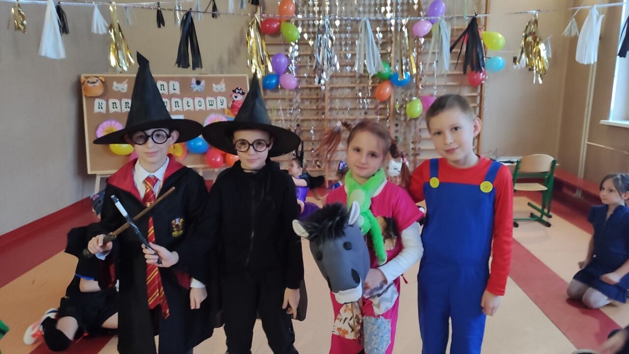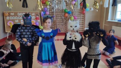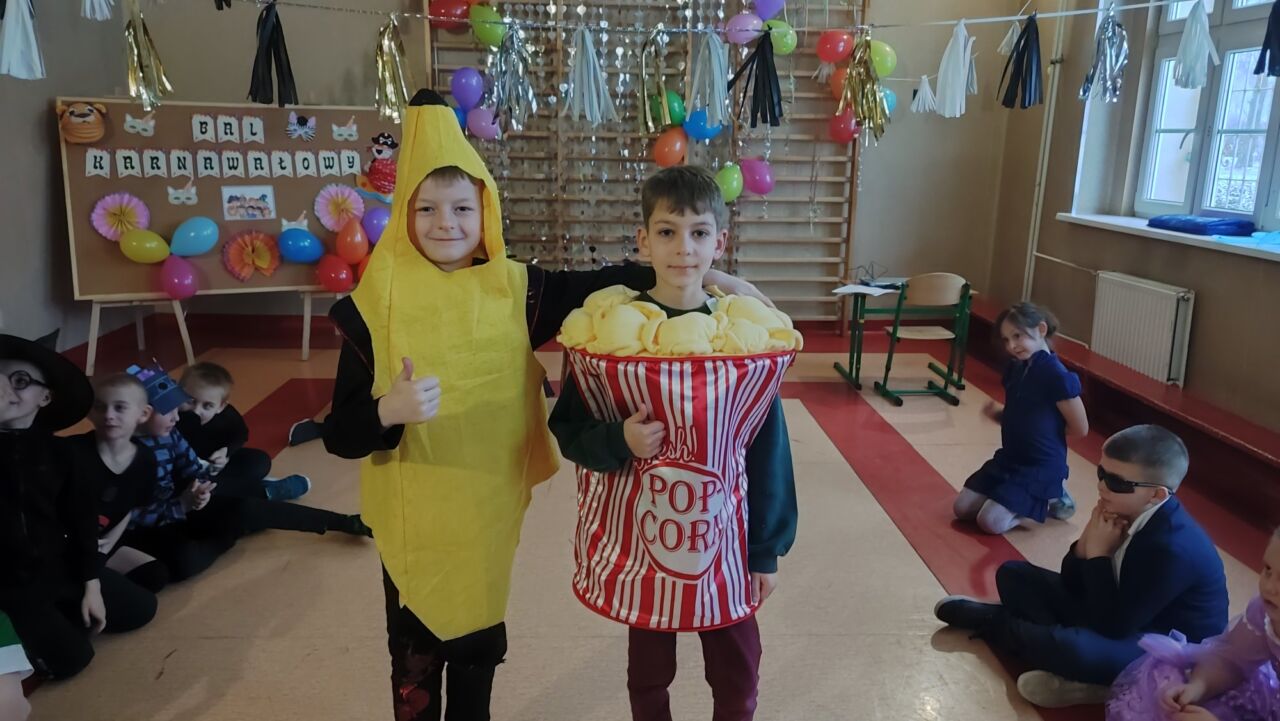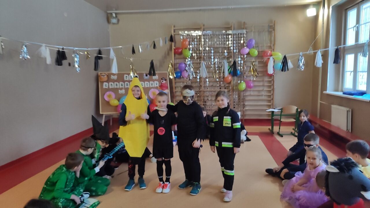 Uczniowie klas 1-3 zamienili się w super bohaterów, księżniczki, zwierzątka i inne bajkowe postacie, by wspólnie świętować Bal Karnawałowy. Kolorowe dekoracje, błyszczące balony i skoczna muzyka sprawiły, że sala zamieniła się w prawdziwą krainę radości. Dzieci chętnie brały udział w zabawach, prezentując swoje fantastyczne stroje oraz ukryte talenty taneczne. Nie zabrakło też słodkiego poczęstunku, który dodał energii do dalszej zabawy!