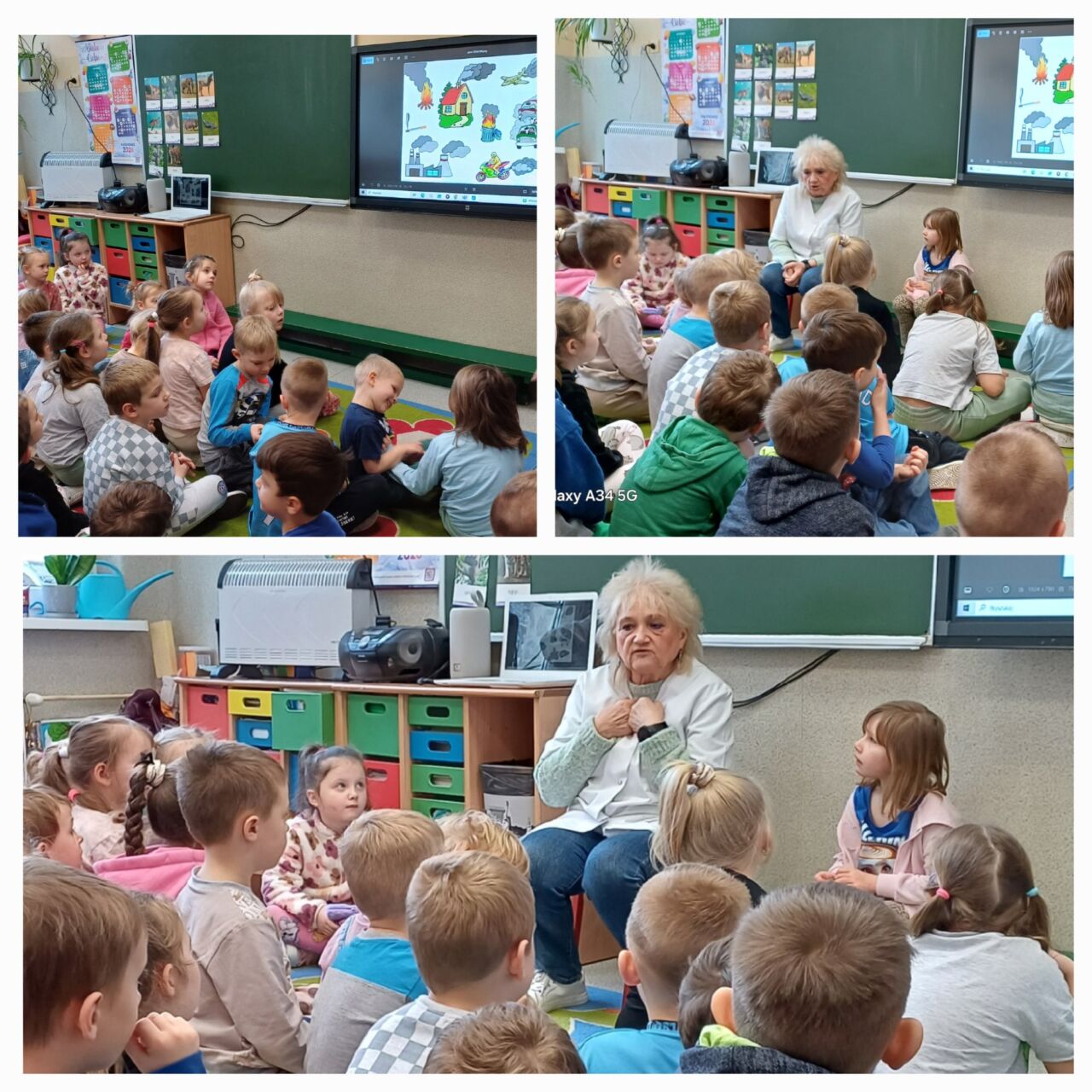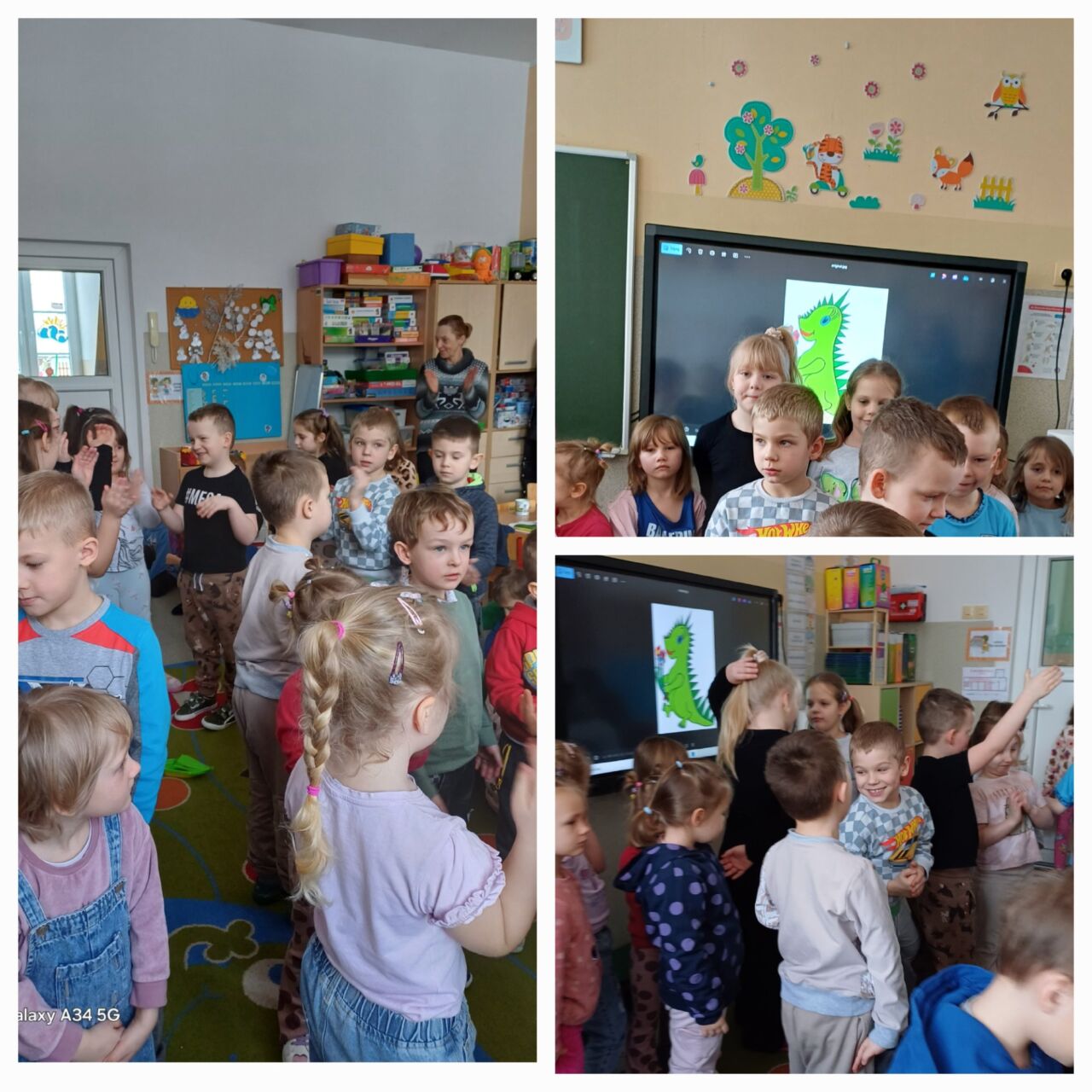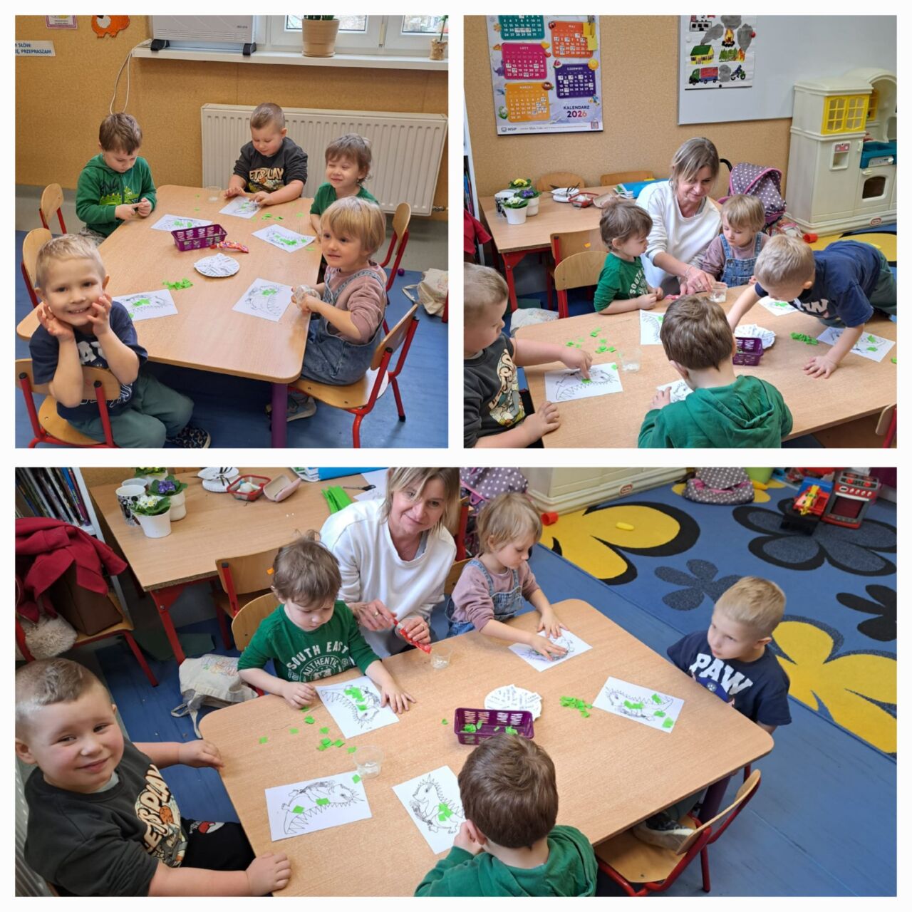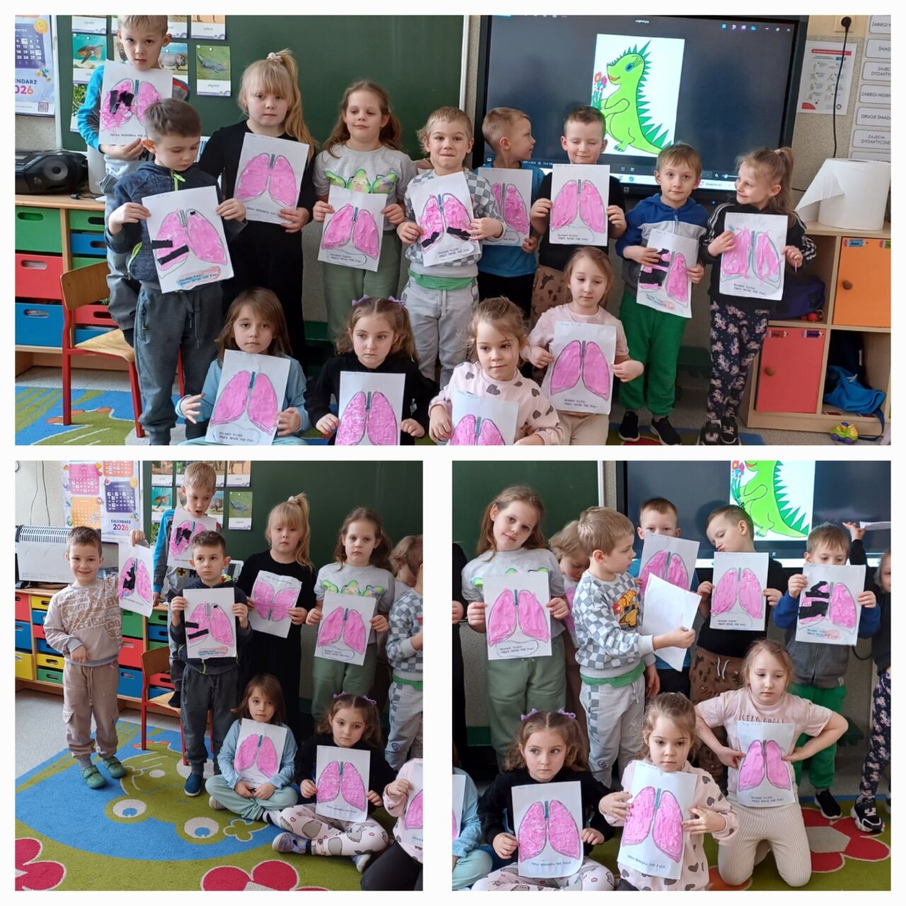 W ramach programu Sanepidu odbyły się w przedszkolu wspólne zajęcia na temat dymu papierosowego. Po rozmowie z pielęgniarką i obejrzeniu filmu edukacyjnego, dzieci zaśpiewały piosenkę o Zielonym Dinku, który jest symbolem tego programu. W każdej grupie wiekowej dzieci wykonały też kolorowanki-Zielonego Dinka. Starszacy wykleili schemat płuc  różową bibułą tworząc plakaty z napisami “Mamo, Tato nie pal przy mnie!” lub ”  Moja rodzina nie pali!”