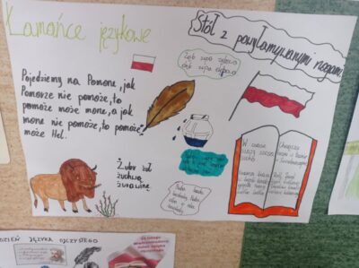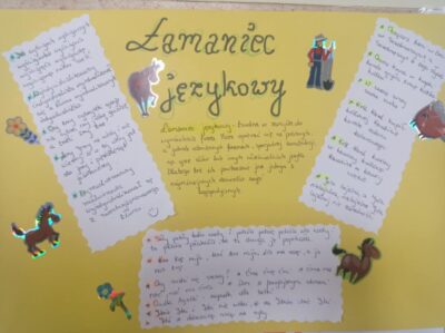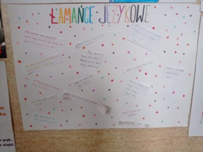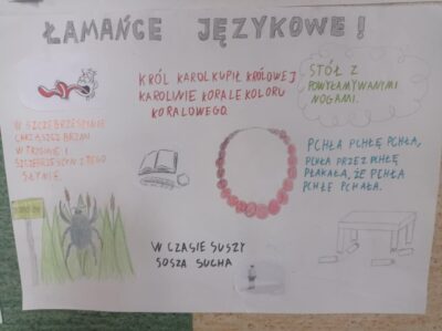 Jednym z działań było wykonywanie plakatów z łamańcami językowymi. Uczniowie wykazali się dużą kreatywnością, pomysłowością oraz starannością wykonania prac. Kolorowe plakaty ozdobiły szkolne korytarze, przypominając wszystkim, jak ważna jest dbałość o poprawną wymowę i kulturę słowa.