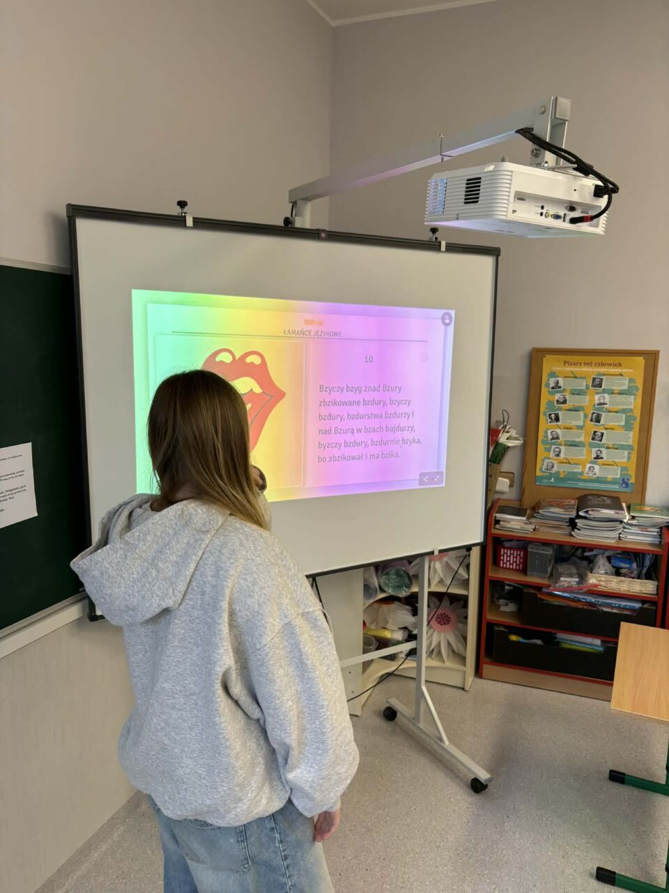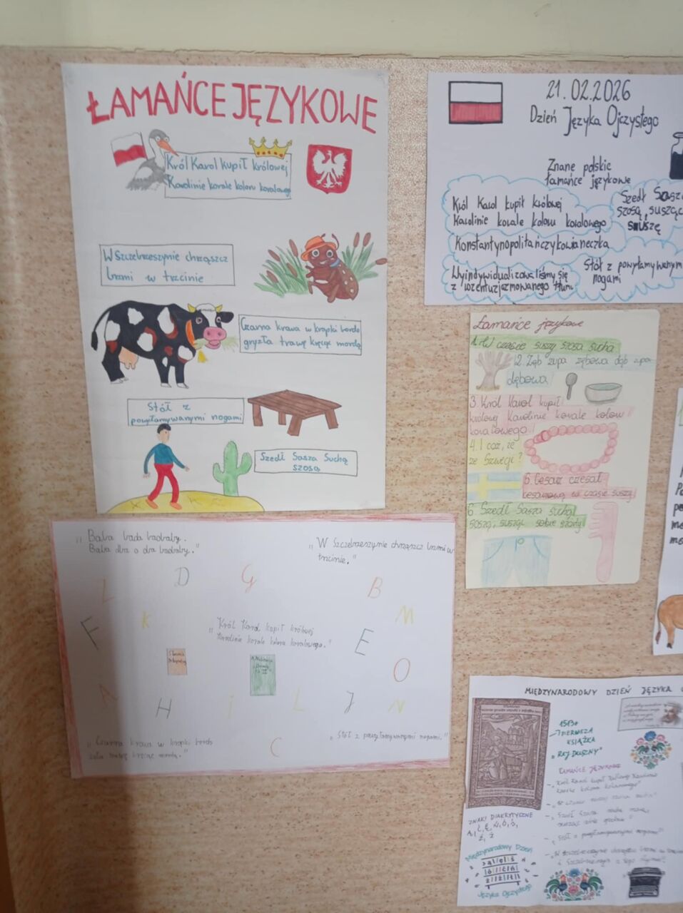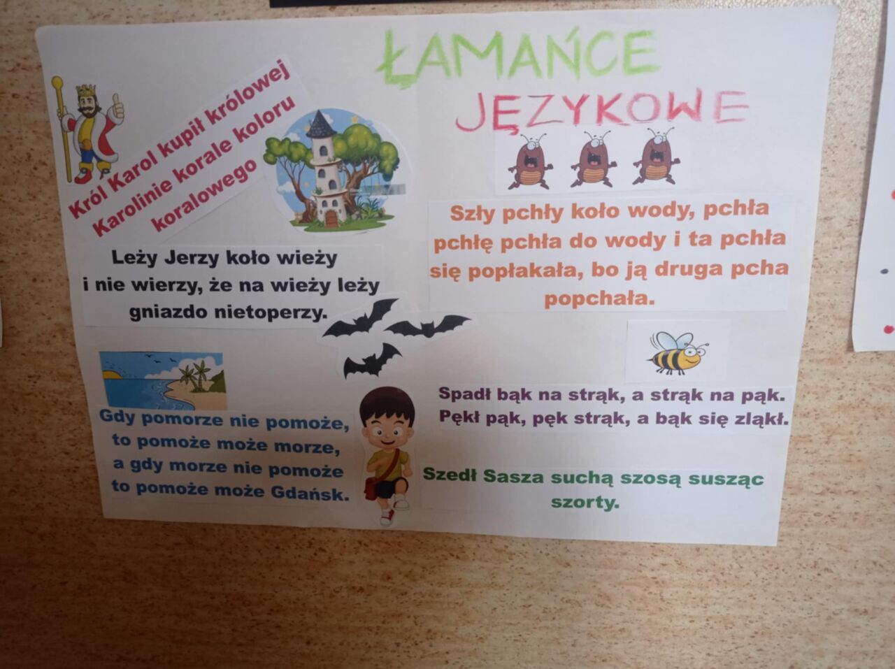 Jednym z działań było wykonywanie plakatów z łamańcami językowymi. Uczniowie wykazali się dużą kreatywnością, pomysłowością oraz starannością wykonania prac. Kolorowe plakaty ozdobiły szkolne korytarze, przypominając wszystkim, jak ważna jest dbałość o poprawną wymowę i kulturę słowa.