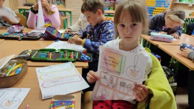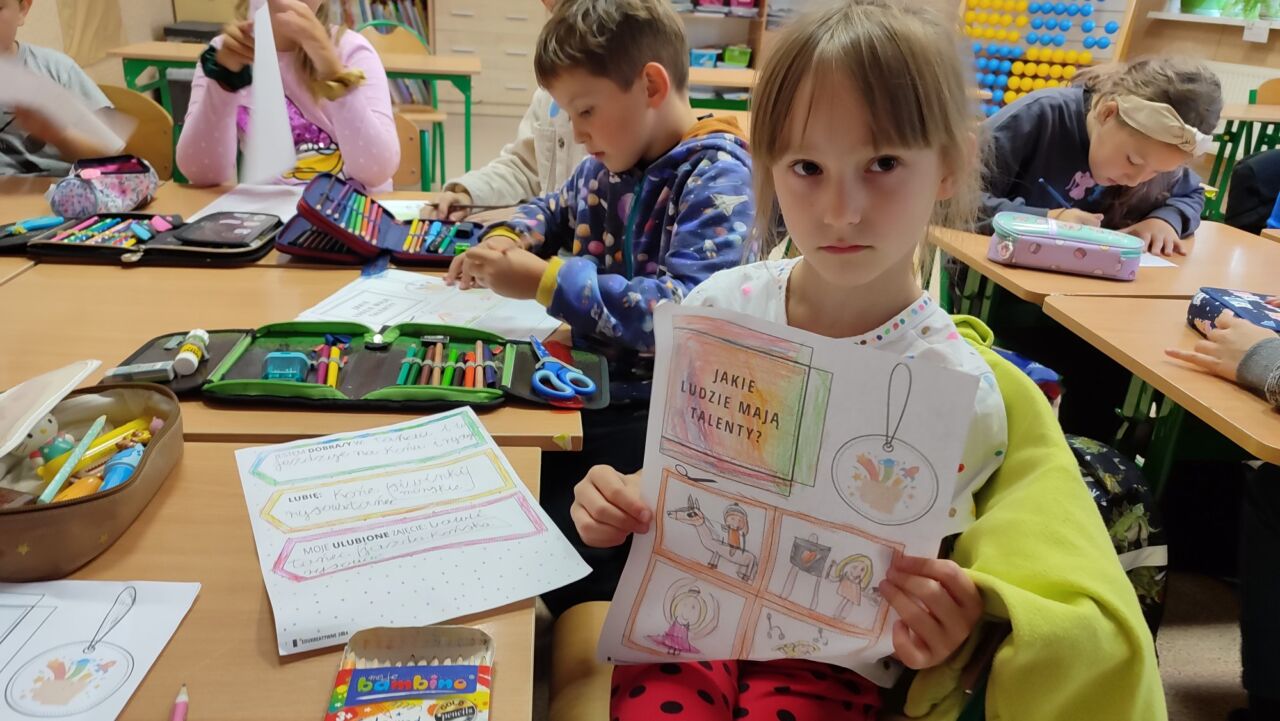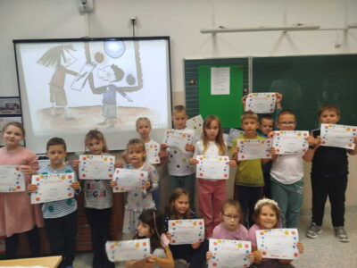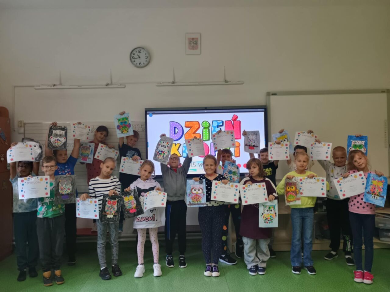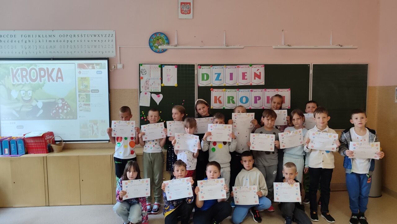 15 września uczniowie klas I-III obchodzili Międzynarodowy Dzień Kropki. Celem tego dnia jest rozbudzanie u dzieci kreatywności, pomysłowości i zachęcenie do działania. Jest to także dzień poszukiwania talentów, odkrywania mocnych stron dzieci. To okazja, aby każde dziecko poczuło, że jest ważne i wyjątkowe. Tego dnia nasze klasy wypełnione były kolorowymi kropkami. Na zajęciach uczniowie klas I-III poznali genezę tego święta. Dzieci uważnie wysłuchały opowiadania, jak to zwyczajna kropka zmieniła świat małej dziewczynki. Uczniowie rozmawiali o swoich talentach, a potem wykonywali prace plastyczne i rozwiązywali łamigłówki matematyczne.