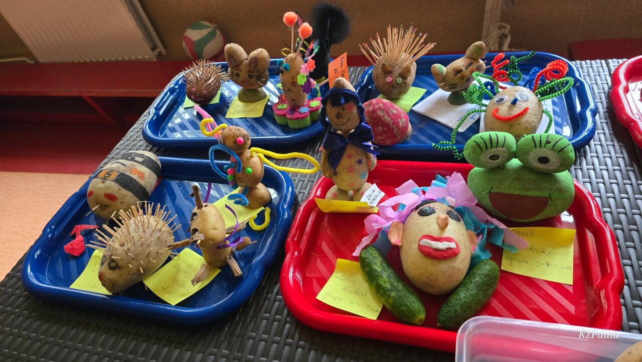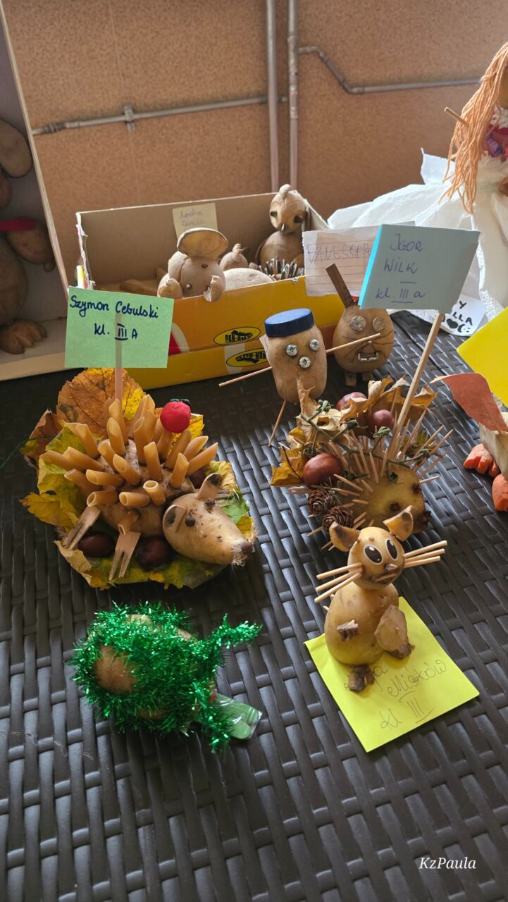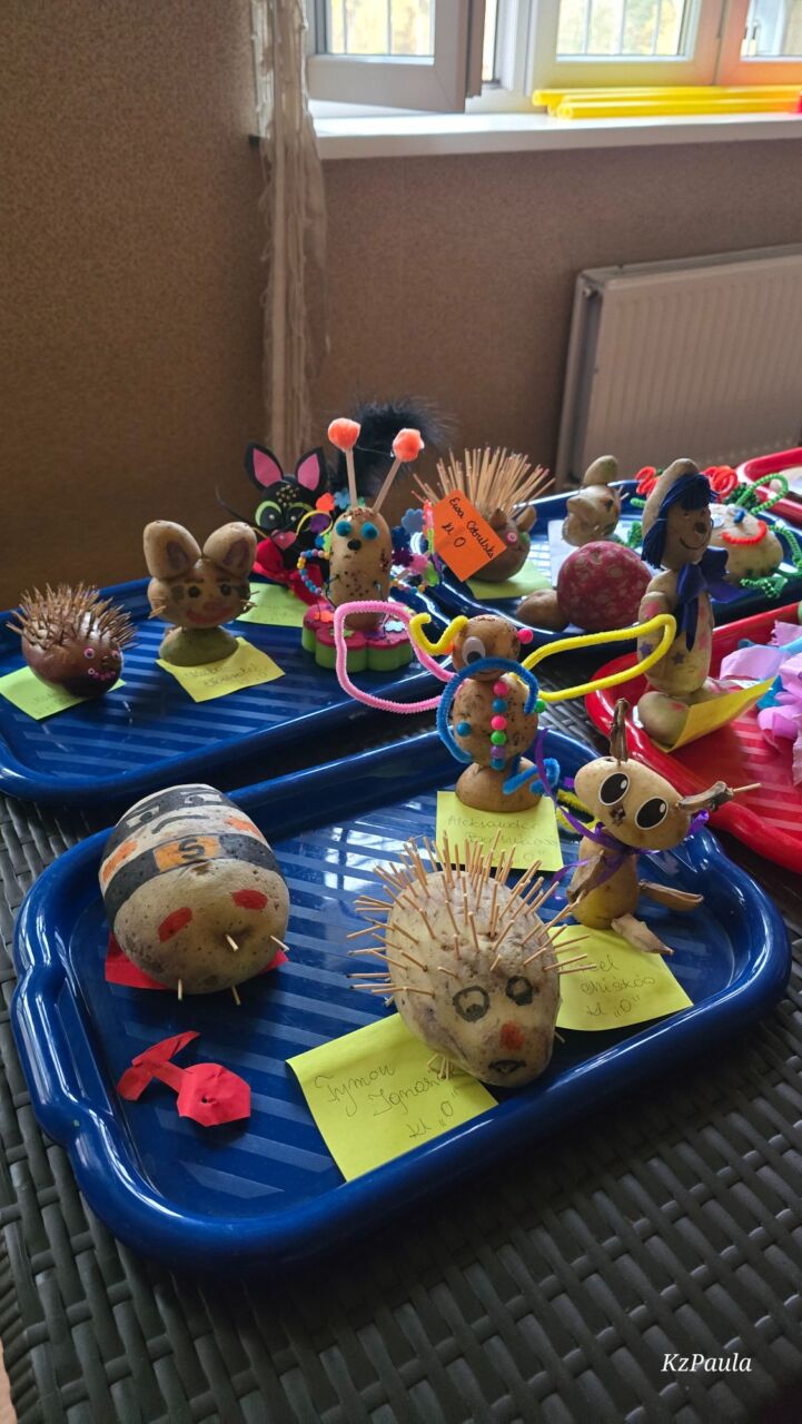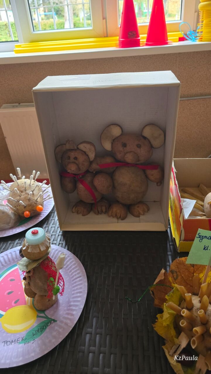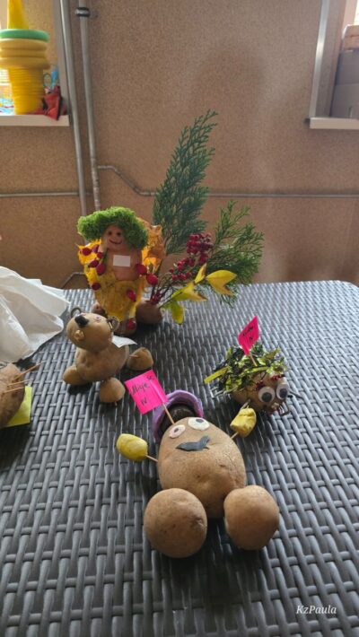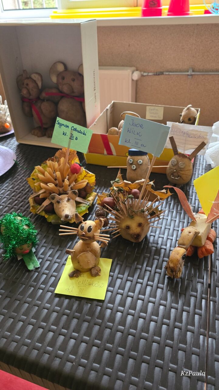 W piątkowe popołudnie Rada Rodziców zorganizowała dla dzieci i uczniów naszego Zespołu ziemniaczany festyn. Były konkurencje sportowe: rzuty do kosza, tor sprawnościowy i mecz piłkarski, a wszystko to z udziałem głównej festynowej ,,postaci’ tj. ziemniaka. Uczestnicy wykazali się również kreacją artystyczną tworząc ,,Ziemniaczane cudaki’. Rodzice natomiast oprócz smakowitych ciast, przygotowali do konkursowej degustacji ziemniaczane sałatki. Dzięki naszemu Panu Konserwatorowi, który wcielił się w nie tylko w strażaka ale i kucharza, mogliśmy smakować pieczone ziemniaki. Jeśli do tego dodamy, że wszystkie konkurencje, dzięki zaradności Pań z Rady Rodziców, były nagradzane nie tylko okazjonalnym dyplomem, ale i nagrodami rzeczowymi, to zabawa pomimo deszczowej pogody, była wyśmienicie słoneczna i udana. Dziękujemy serdecznie!