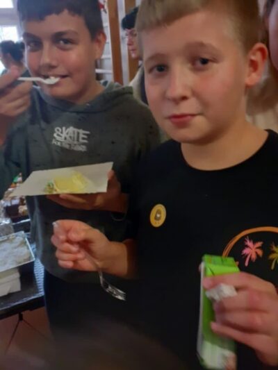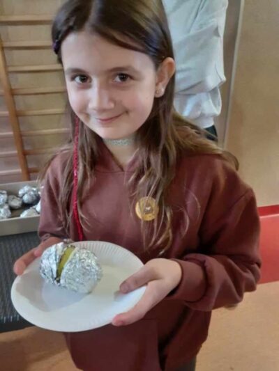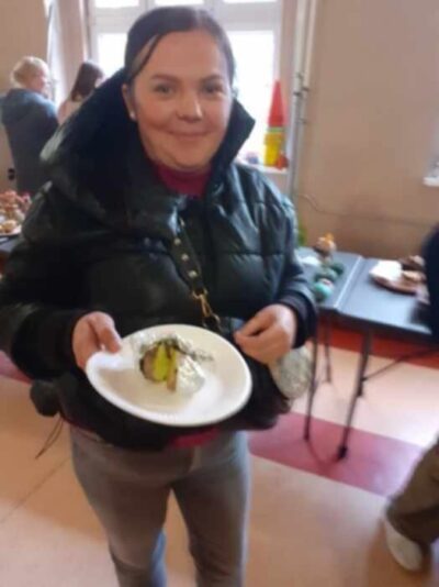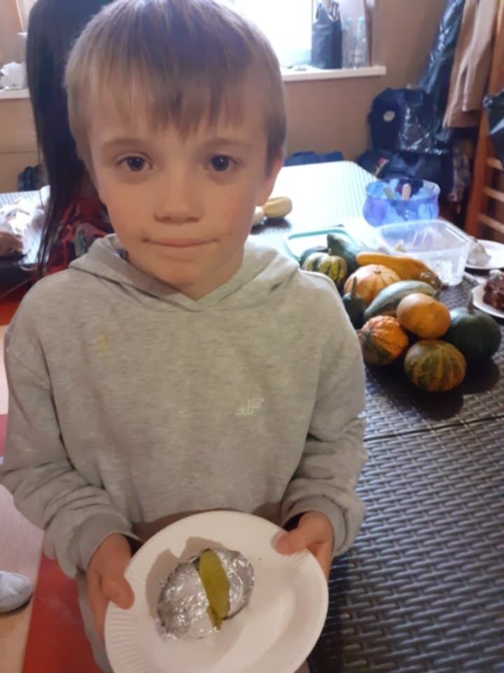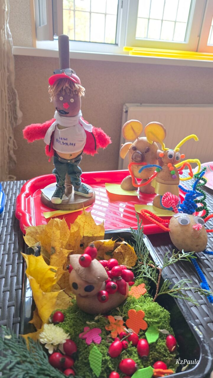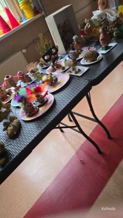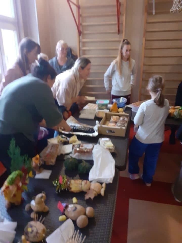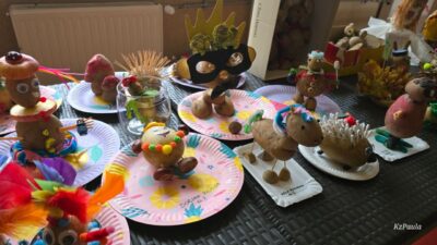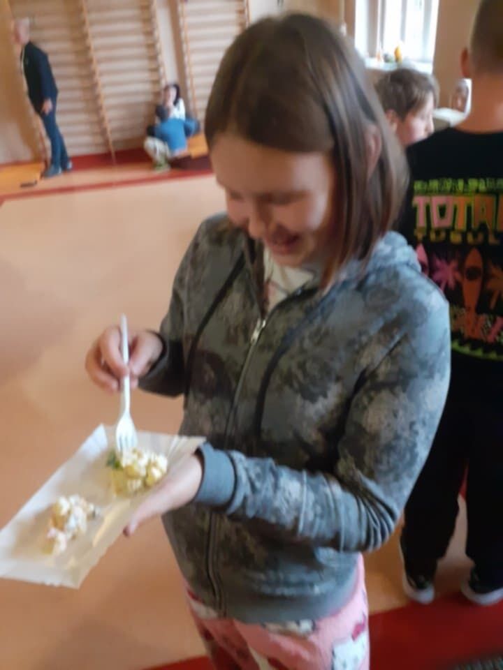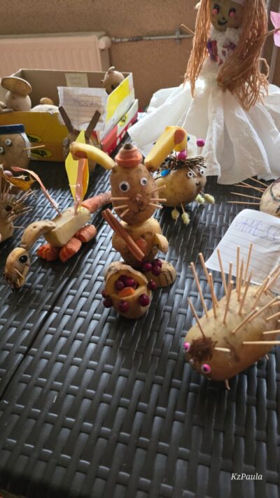 W piątkowe popołudnie Rada Rodziców zorganizowała dla dzieci i uczniów naszego Zespołu ziemniaczany festyn. Były konkurencje sportowe: rzuty do kosza, tor sprawnościowy i mecz piłkarski, a wszystko to z udziałem głównej festynowej ,,postaci’ tj. ziemniaka. Uczestnicy wykazali się również kreacją artystyczną tworząc ,,Ziemniaczane cudaki’. Rodzice natomiast oprócz smakowitych ciast, przygotowali do konkursowej degustacji ziemniaczane sałatki. Dzięki naszemu Panu Konserwatorowi, który wcielił się w nie tylko w strażaka ale i kucharza, mogliśmy smakować pieczone ziemniaki. Jeśli do tego dodamy, że wszystkie konkurencje, dzięki zaradności Pań z Rady Rodziców, były nagradzane nie tylko okazjonalnym dyplomem, ale i nagrodami rzeczowymi, to zabawa pomimo deszczowej pogody, była wyśmienicie słoneczna i udana. Dziękujemy serdecznie!