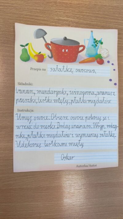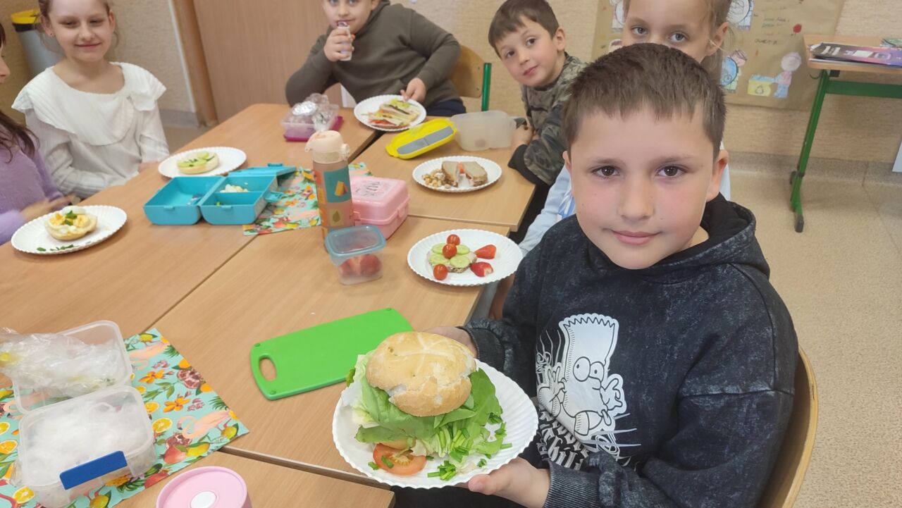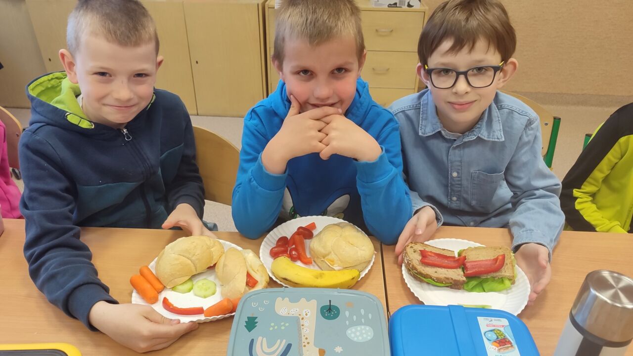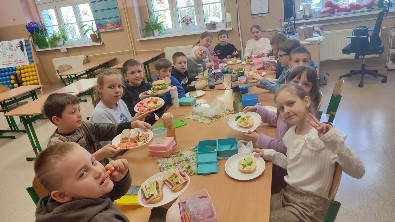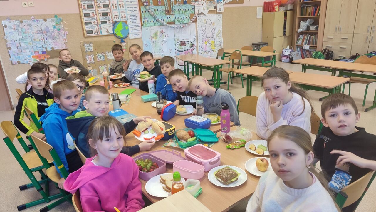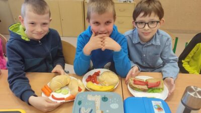 24 kwietnia obchodzimy Europejski Dzień Śniadania. Celem tego święta jest promowanie zdrowego jedzenia, dobrych nawyków żywieniowych, spożywania regularnie posiłków – w szczególności śniadania oraz informowanie o konsekwencjach złej diety. Była to świetna okazja, żeby przyjrzeć się temu, co dzieci jedzą na co dzień. Uczniowie klasy 2 w tym dniu samodzielnie przygotowali sobie śniadanie ze zdrowych produktów, utrwalili co powinna zawierać zdrowa dieta oraz napisali przepis na zdrową sałatkę owocową.