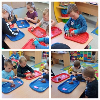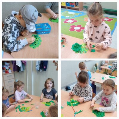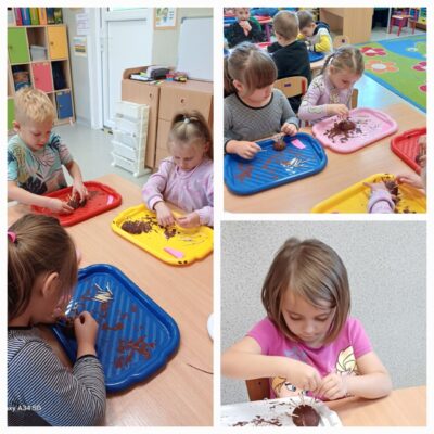 W grupie “Biedronek” dzieci nie tylko uczą się pierwszych literek i cyfr. Ważnym elementem nauki są wszelkie prace plastyczne. Prace te mają w przedszkolu ogromne znaczenie dla wszechstronnego rozwoju dziecka, obejmującego sferę poznawczą, emocjonalną, społeczną i fizyczną. To nie tylko zwykła zabawa, ale kluczowy element edukacji przedszkolnej, który wspiera rozwój na wielu poziomach. Między innymi to motoryka mała i koordynacja: Dzieci, rysując, malując, lepiąc i wycinając, ćwiczą i usprawniają mięśnie dłoni i palców. To z kolei przygotowuje je do nauki pisania. Precyzyjne ruchy podczas twórczości plastycznej poprawiają koordynację wzrokowo-ruchową. A to nasze niektóre wytwory.