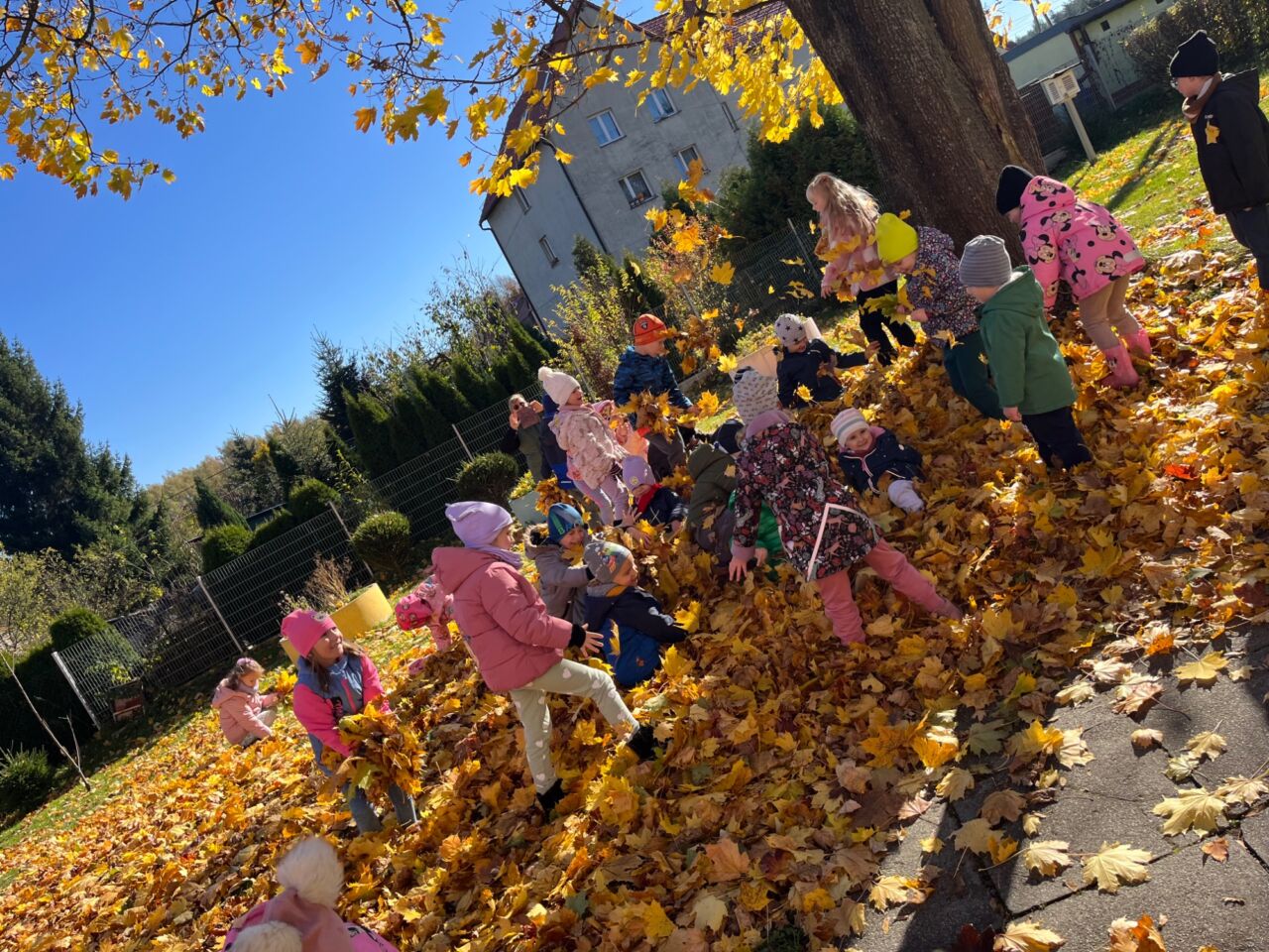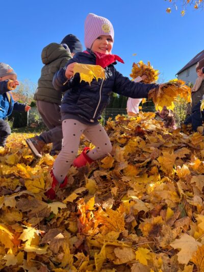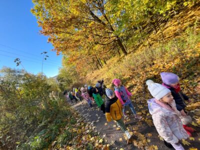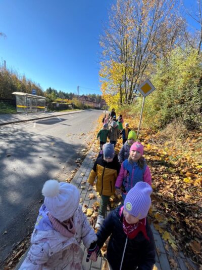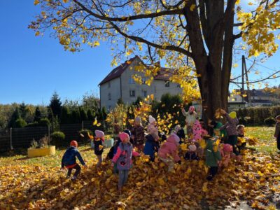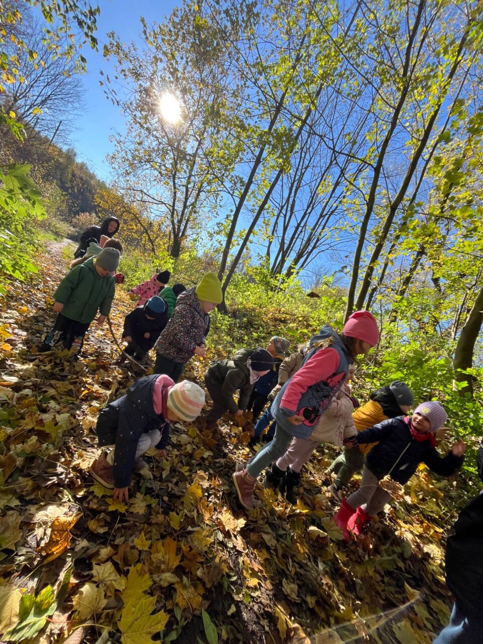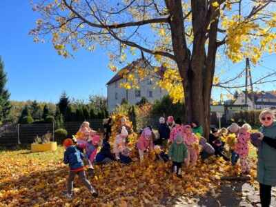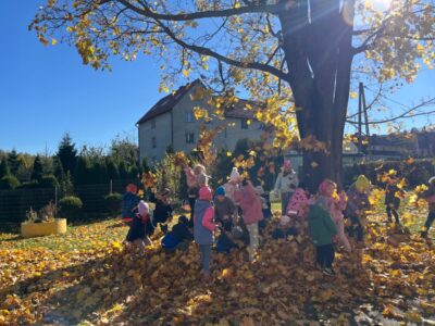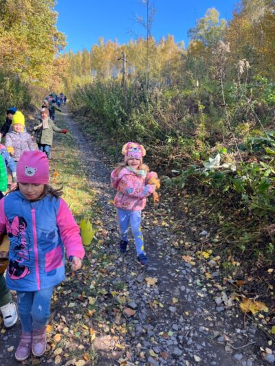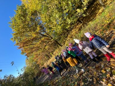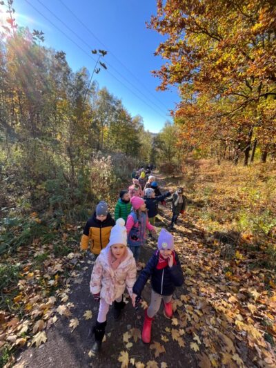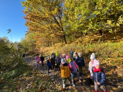 Dziś Nasze przedszkolaki wybrały się na jesienny spacer do pobliskiego lasu, aby obserwować zmiany zachodzące w przyrodzie. Dzieci z zainteresowaniem zbierały kolorowe liście, kasztany i żołędzie. Podczas spaceru uczyły się rozpoznawać gatunki drzew oraz słuchały odgłosów lasu. Wycieczka była doskonałą okazją do nauki przez zabawę i wspólnego spędzania czasu na świeżym powietrzu.