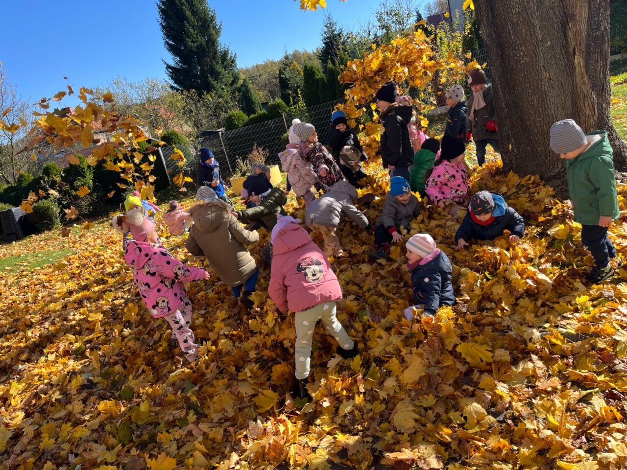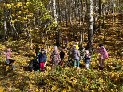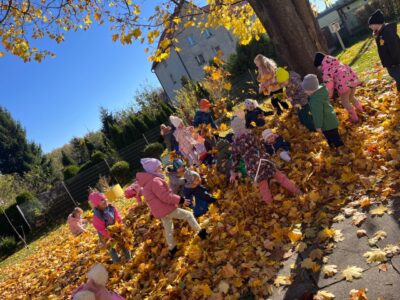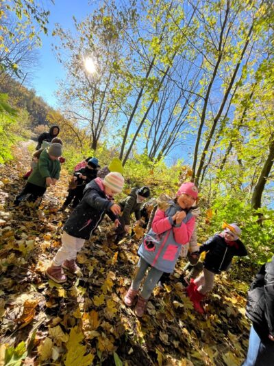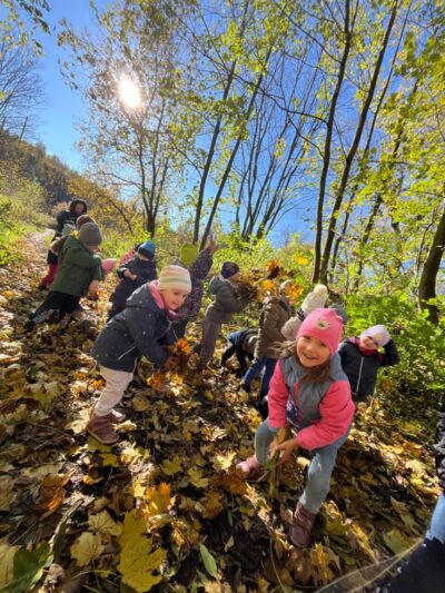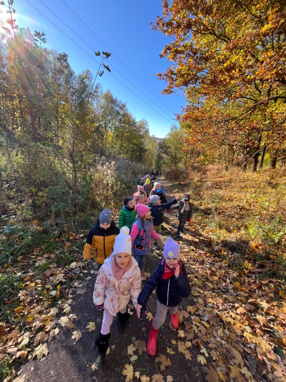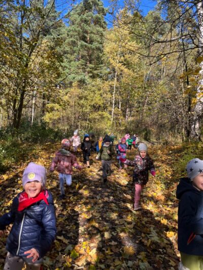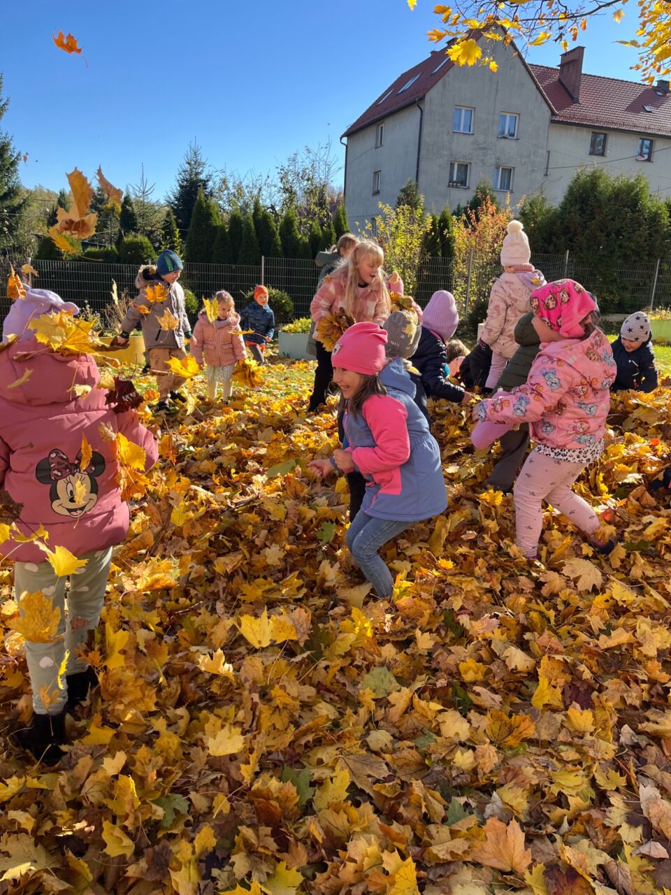 Dziś Nasze przedszkolaki wybrały się na jesienny spacer do pobliskiego lasu, aby obserwować zmiany zachodzące w przyrodzie. Dzieci z zainteresowaniem zbierały kolorowe liście, kasztany i żołędzie. Podczas spaceru uczyły się rozpoznawać gatunki drzew oraz słuchały odgłosów lasu. Wycieczka była doskonałą okazją do nauki przez zabawę i wspólnego spędzania czasu na świeżym powietrzu.