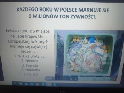 Klasa 6 Innowacja ekologiczna . EKO – WAŁBRZYCH – Działaj lokalnie, myśl globalnie. Podczas godziny wychowawczej w dn.24.10.2025 r. Uczniowie klasy VI uczestniczyli w zajęciach poświęconych idei kuchni zero waste . Na początku obejrzeli prezentację multimedialną, z której dowiedzieli się, jak dużo żywności marnuje się na świecie i w Polsce. Poznali też sposoby naturalnego utrwalania produktów spożywczych oraz zasady przechowywania żywności w lodówce. Uczniowie omówili także, jak planować zakupy i posiłki, aby ograniczyć ilość odpadów oraz w jaki sposób można ponownie wykorzystać resztki jedzenia. W drugiej części zajęć wykonali plakatu promujące idę nie marnowania żywności, a następnie podzielili się przepisami na pyszne koktajle i sałatki przygotowane z resztek owoców i warzyw. Zajęcia przebiegały w miłej i twórczej atmosferze, a uczniowie wykazali się dużym zaangażowaniem i pomysłowością.