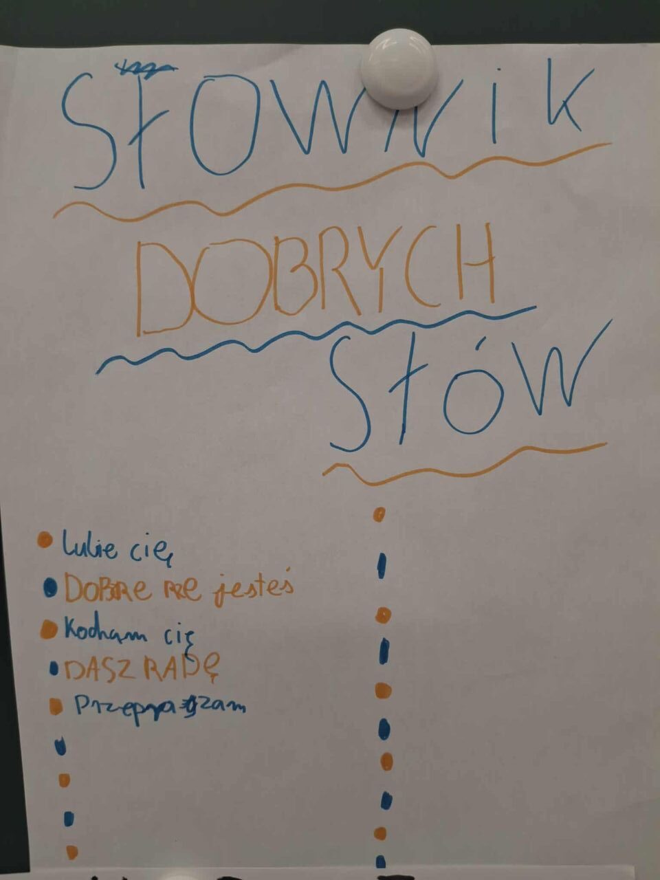 Pod takim hasłem odbyły się zajęcia, podczas których uczniowie odkrywali moc życzliwych słów. Wspólnie zastanawialiśmy się, jak ważne jest to, co mówimy sobie nawzajem – i jak dobre słowo potrafi poprawić nastrój, dodać otuchy czy wywołać uśmiech.