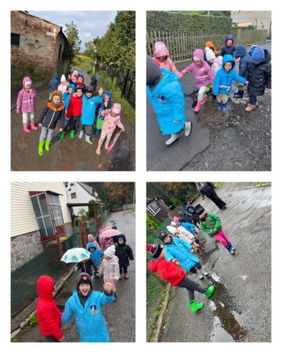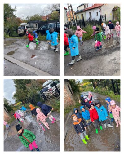 Wyjście na zabawy w kałużach wesoło sprawiło, że deszcze Nam nie straszne! Eksplorowanie świata – to to co dzieci kochają najbardziej.