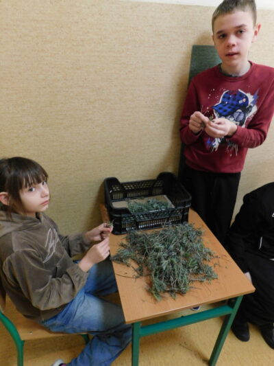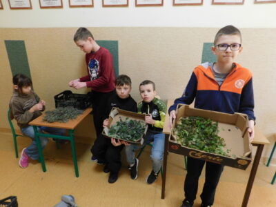 Lawenda, melisa i szałwia to ostatnie zioła, które zebraliśmy w naszym Laboratorium Smaków i Zapachów – Szkolnym Zielniku. Segregacja i przygotowanie do suszenia, to nie tylko zajęcie edukacyjne, ale i manualne, uczące dokładności i cierpliwości.  Unoszący się na korytarzu ziołowy zapach, przyciągnął ciekawskie koleżanki i kolegów. Z tych ziół w następnym etapie podczas zajęć edukacji zdrowotnej, będą przygotowywane w okresie zimowym nasze “Herbatki z Gaju”.