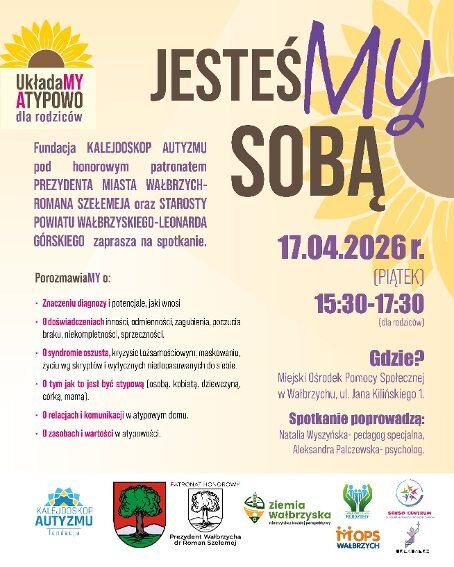 Zaproszenie na konferencję dotyczącą autyzmu. Informacje szczegółowe na dołączonym plakacie.