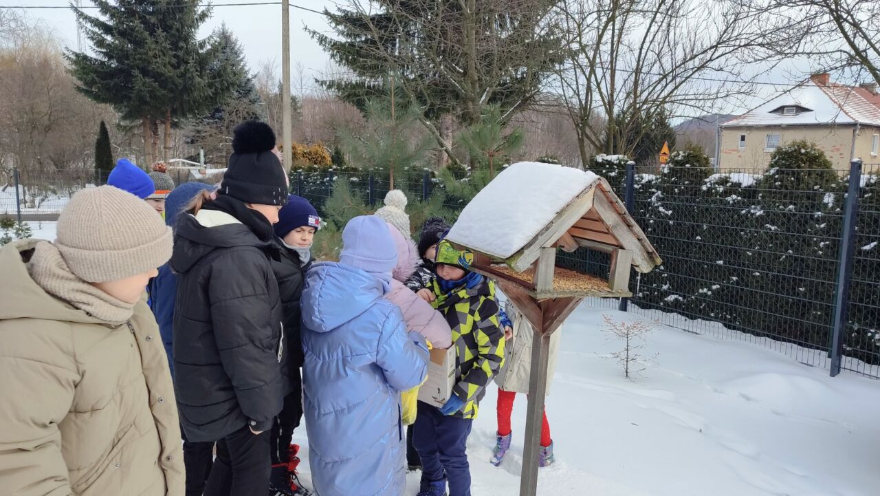 Nie od dziś wiadomo, że zima to trudny czas dla ptaków oraz zwierząt. Uczniowie klasy II mają tego świadomość, dlatego po raz kolejny włączyli się w akcję systematycznego ich dokarmiania. Dzieci podczas zajęć z edukacji przyrodniczej gromadziły wiadomości na temat ptaków zimujących w Polsce, dowiedziały się jakiego rodzaju pokarmu potrzebują oraz jakie są zasady właściwego ich dożywiania, a następnie uraczyć “skrzydlatych przyjaciół”  odpowiednimi przysmakami.