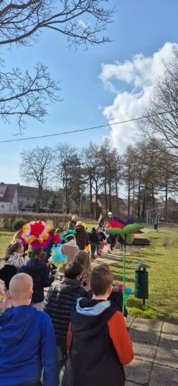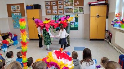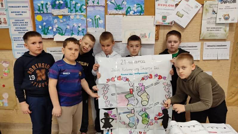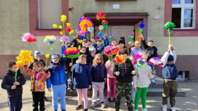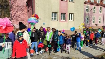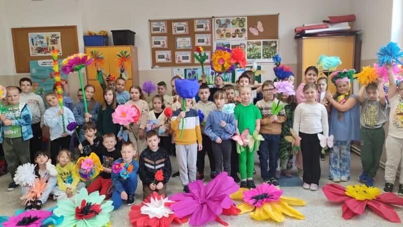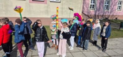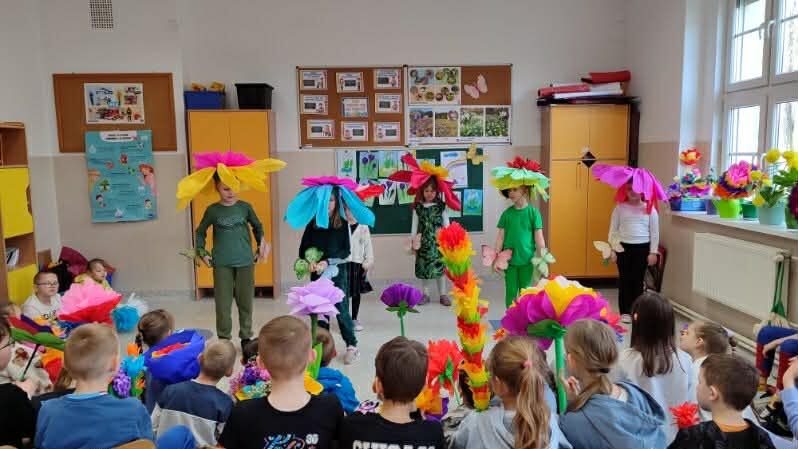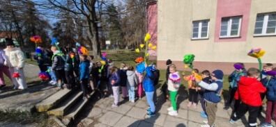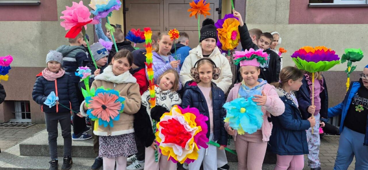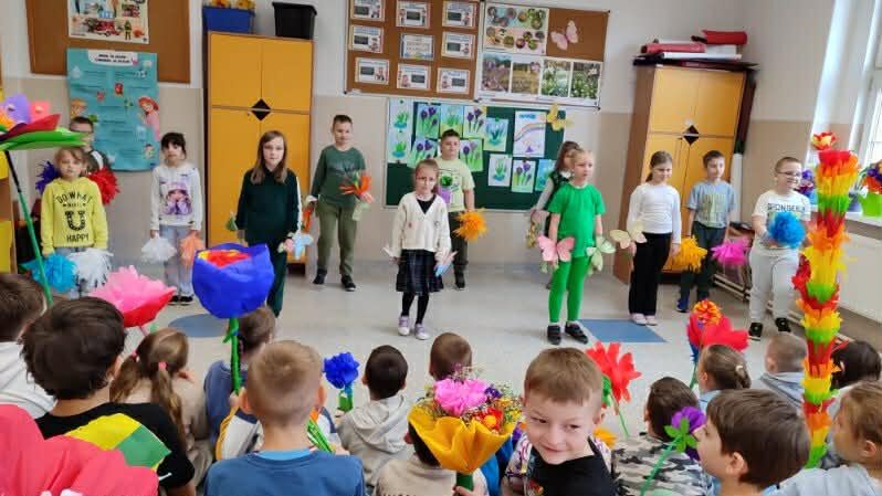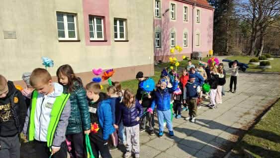 Uczniowie klasy I przygotowali tańce oraz piosenkę z okazji powitania wiosny dla swoich starszych kolegów i koleżanek. Taniec wykonany został do utworu „Walc kwiatów”, a następnie dzieci zaśpiewały i zatańczyły wiosenną piosenkę. Po części artystycznej uczniowie w swoich klasach wykonali kolorowe kwiaty oraz wiosenne plakaty, podkreślające radosny charakter tego dnia. Następnie wszyscy wspólnie przemaszerowali uliczkami Gaju, witając wiosnę i wprowadzając wiosenny nastrój.