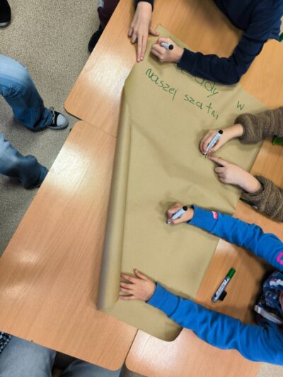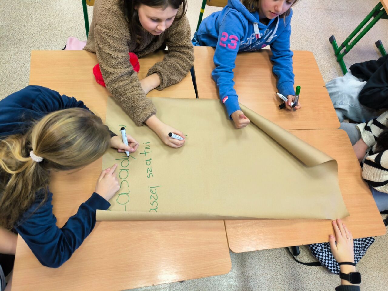 Uczniowie naszej szkoły biorą czynny udział w tworzeniu zasad obowiązujących w społeczności szkolnej. 19 stycznia rozpoczęła się wspólna praca nad przygotowaniem regulaminu korzystania z szatni, w której uczestniczyli przedstawiciele poszczególnych klas. Uczniowie mogli podzielić się własnymi spostrzeżeniami i pomysłami, które mogłyby pomóc w minimalizowaniu niepożądanych zachowań w szatni, a także wypracować zasady, dzięki którym korzystanie z niej byłoby komfortowe dla wszystkich uczniów.