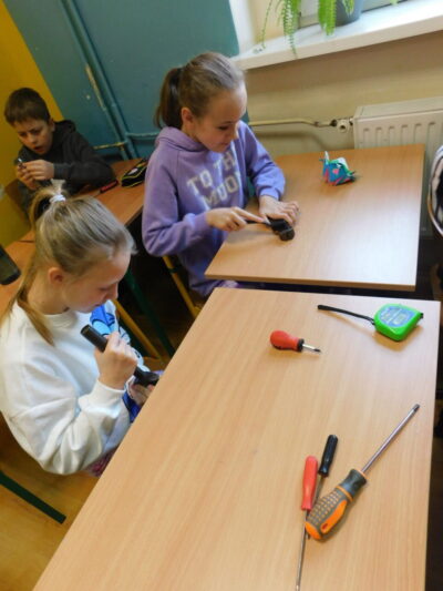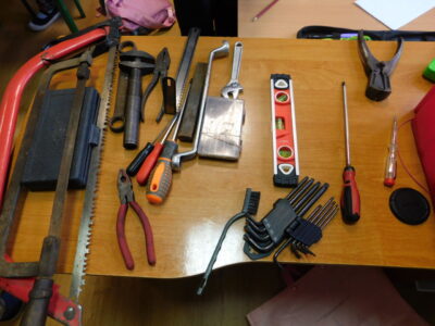 Ręczne i podręczne narzędzia, przydatne w domu. Pod takim roboczym tytułem miały miejsce zajęcia techniki uczniów jednego z naszych oddziałów. Poznawaliśmy praktycznie podstawowe narzędzia, którymi możemy posługiwać się w domu w przypadku doraźnej potrzeby. Można było zapoznać się z różnymi rodzajami śrubokrętów, kluczy, przymiarów i piłek. Uczniowie nabywali również praktyczną wiedzę do jakich prac służy dane narzędzie. Było przy tym także sporo humoru, gdy okazało się, iż jeden z kluczy to “francuz”.