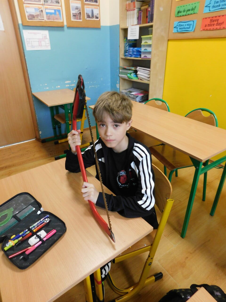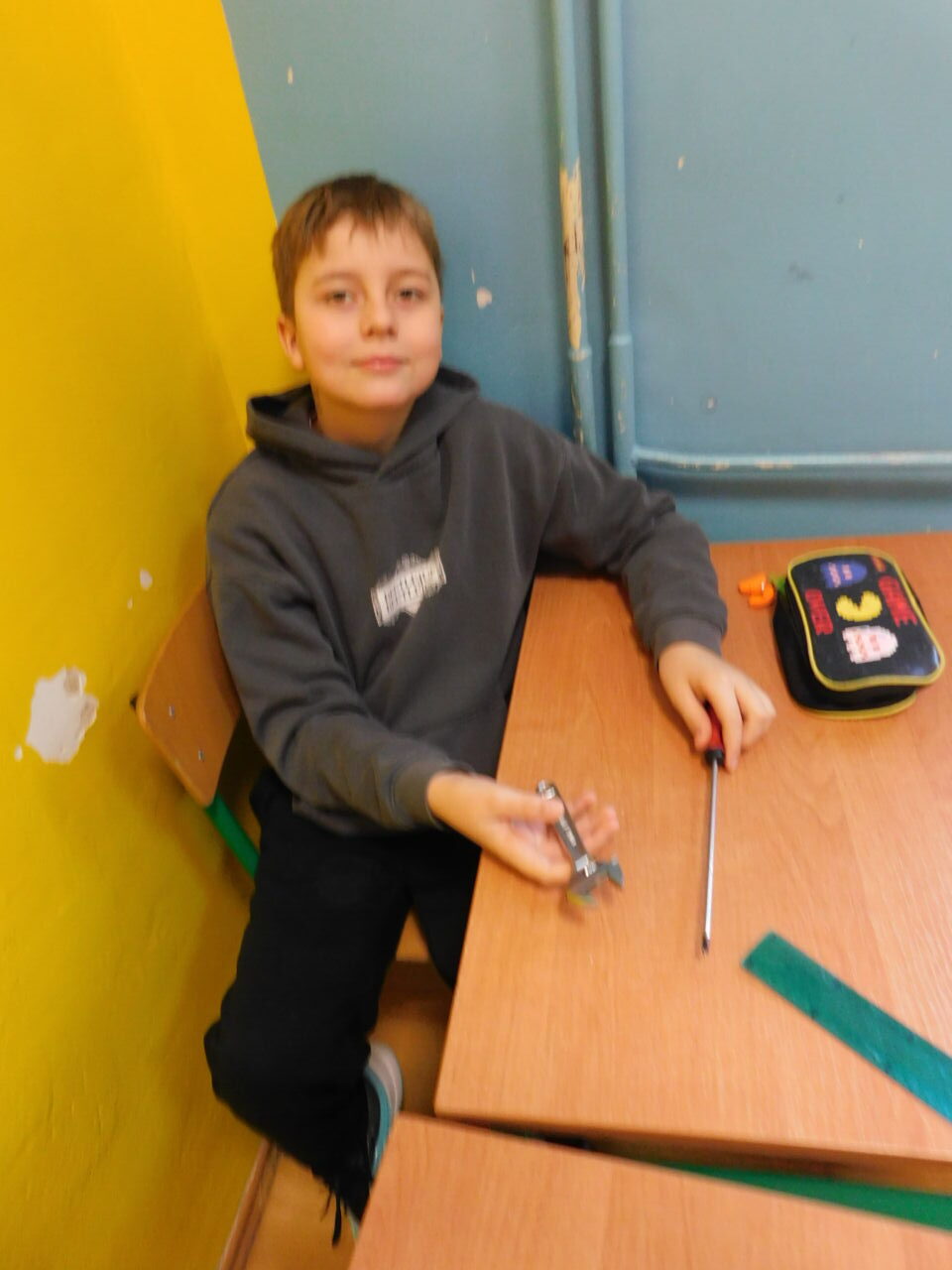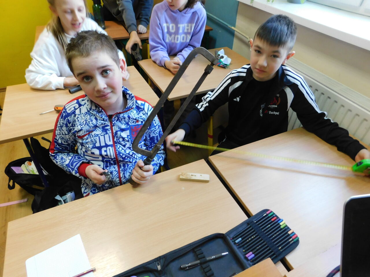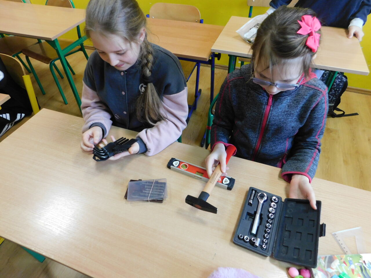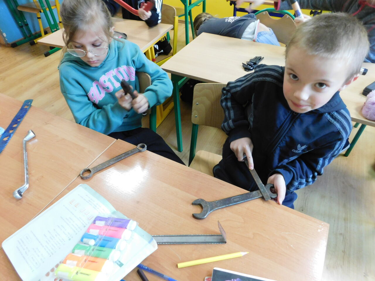 Ręczne i podręczne narzędzia, przydatne w domu. Pod takim roboczym tytułem miały miejsce zajęcia techniki uczniów jednego z naszych oddziałów. Poznawaliśmy praktycznie podstawowe narzędzia, którymi możemy posługiwać się w domu w przypadku doraźnej potrzeby. Można było zapoznać się z różnymi rodzajami śrubokrętów, kluczy, przymiarów i piłek. Uczniowie nabywali również praktyczną wiedzę do jakich prac służy dane narzędzie. Było przy tym także sporo humoru, gdy okazało się, iż jeden z kluczy to “francuz”.