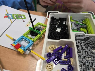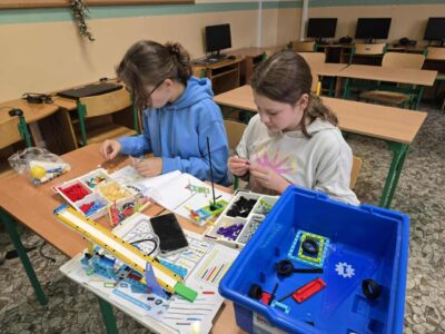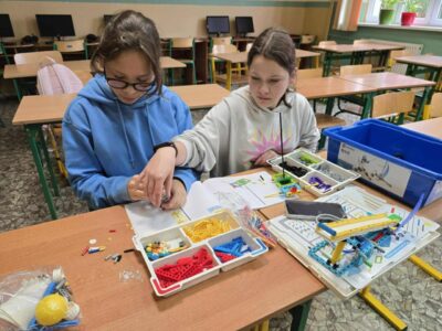 Na dodatkowych zajęciach z informatyki uczniowie rozwijają swoje umiejętności z zakresu podstaw konstrukcji i programowania. Tym razem pracują z zestawami klocków LEGO, które zostały zakupione w ramach programu Laboratoria Przyszłości.