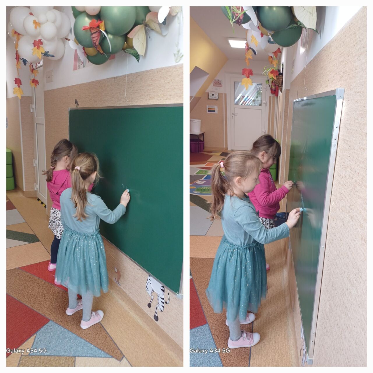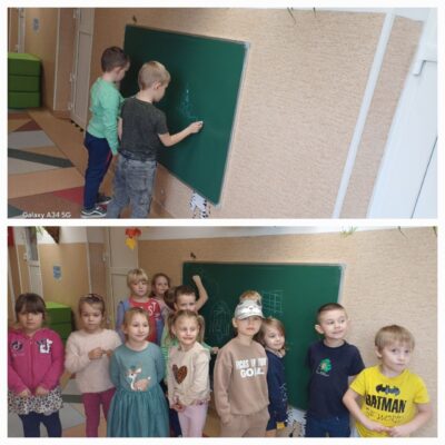 Przedszkolne zabawy przy tablicy.