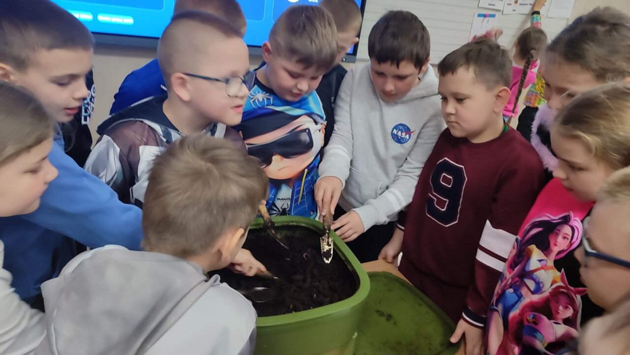 18.03.2026 r. klasa I i II brały udział w warsztatach ekologicznych “Dołącz do zmian. Nie bądź zmieszany- segreguj BIO się opłaca”. Dzieci dowiedziały się wielu ciekawych rzeczy dotyczących segregacji i wykorzystania bioodpadów. Bioodpady takie jak np.: obierki z warzyw i owoców, fusy z kawy, herbaty, zwiędłe kwiaty i drobne gałązki, trawa, liście NIE powinny trafiać do odpadów zmieszanych. Prawidłowo posegregowane bioodpady trafiają do kompostowni, gdzie są przetwarzane na wartościowy kompost – naturalny nawóz. Uczniowie mieli również okazję dowiedzieć się w jaki sposób założyć i prowadzić własny kompostownik.