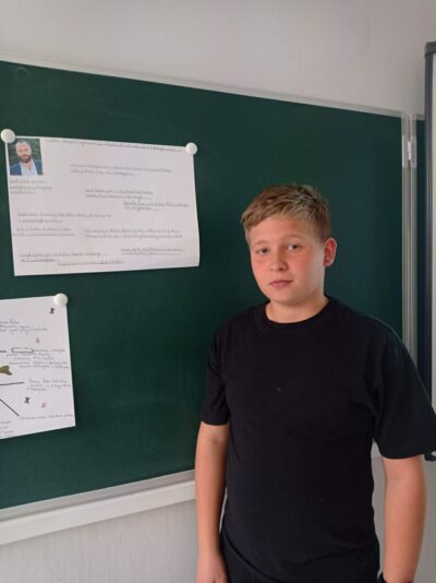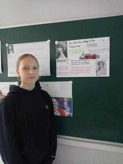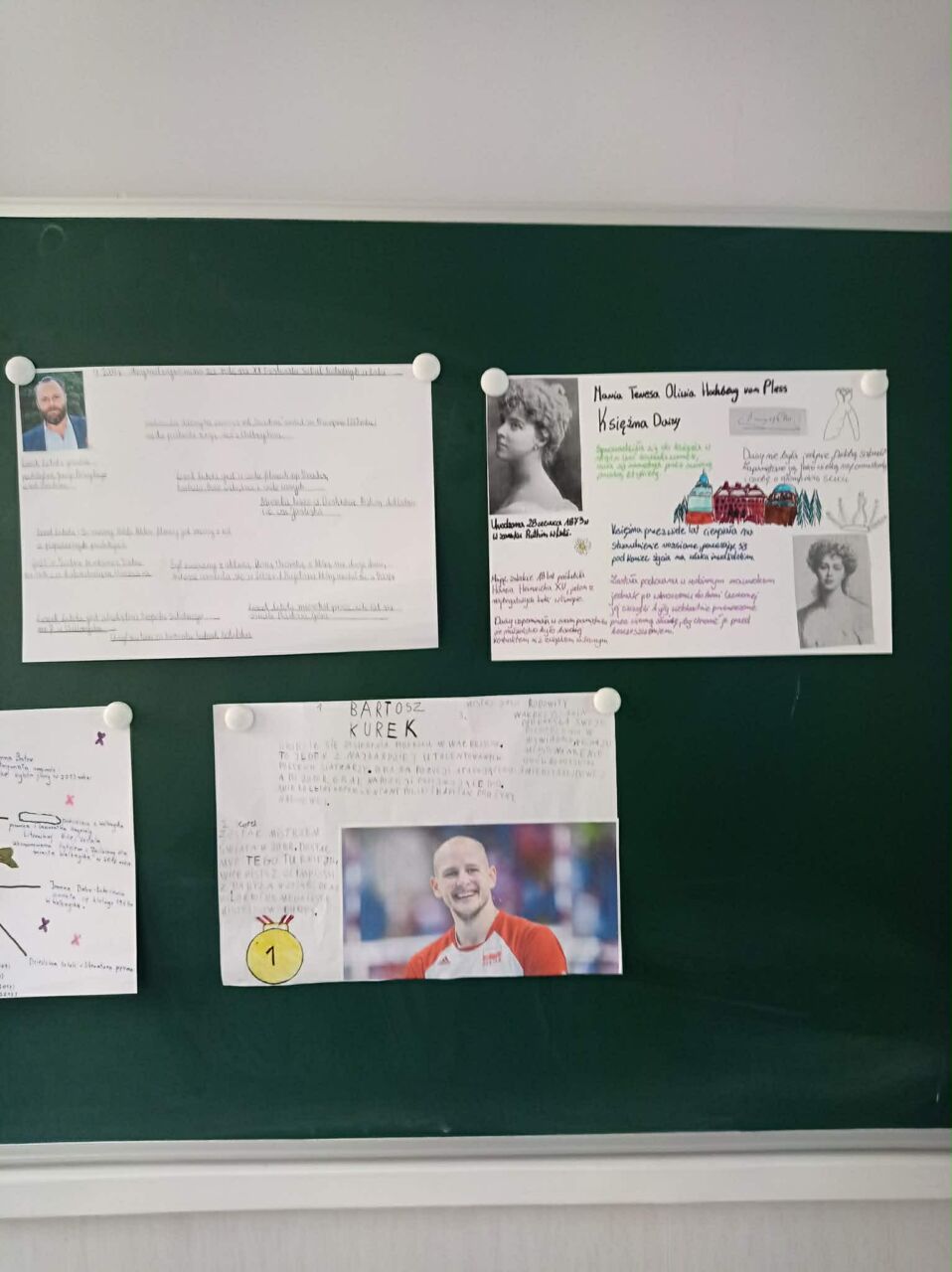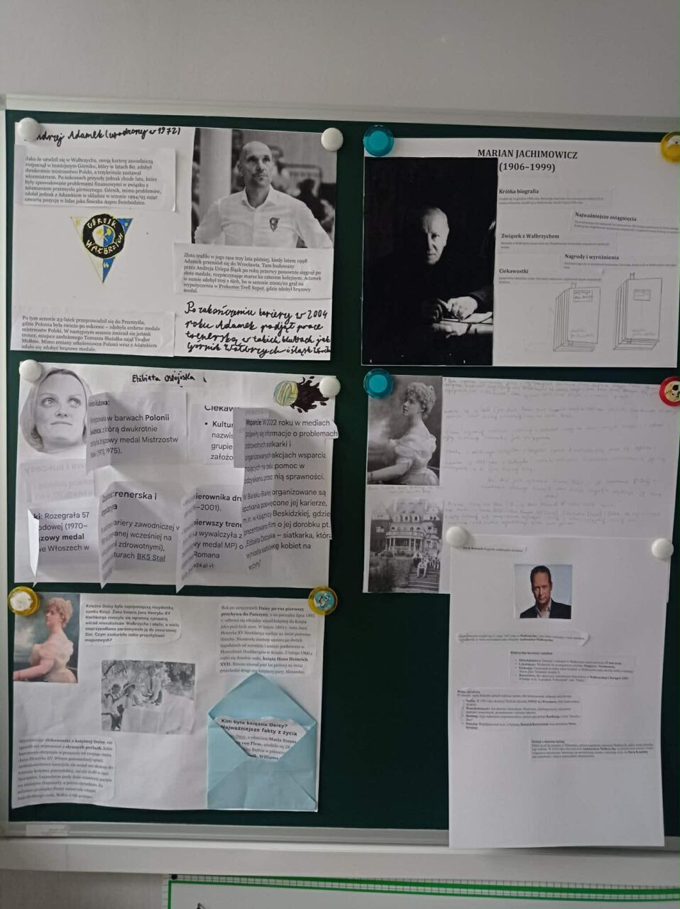 W kwietniu w klasie 6 w ramach obchodów 600-lecia Wałbrzycha odbyły się warsztaty pt.: Portrety znanych Wałbrzyszan. Podczas zajęć uczniowie zdobywali informacje na temat znanych osób związanych z Wałbrzychem, działających w różnych dziedzinach, takich jak kultura, sport, nauka czy życie społeczne. Na początku uczestnicy samodzielnie wyszukali w internecie wiadomości o wybranych przez siebie postaciach. Następnie przygotowali plakaty prezentujące najważniejsze informacje o tych osobach, ich osiągnięcia oraz związek z miastem. Kolejnym etapem było przedstawienie na forum klasy efektów pracy. Każdy miał okazję wypowiedzieć się na temat tego, w jak sposób dana osoba przyczyniła się do promowania i reprezentowania Wałbrzycha. Dzięki udziałowi w warsztatach uczniowie nauczyli się skutecznego wyszukiwania informacji, rozwijali umiejętności pracy z różnymi źródłami oraz doskonalili kompetencje prezentacyjne. Warsztaty przyczyniły się do pogłębienia wiedzy o lokalnej historii oraz wzbudziły większe zainteresowanie swoim miastem i jego wybitnymi mieszkańcami.