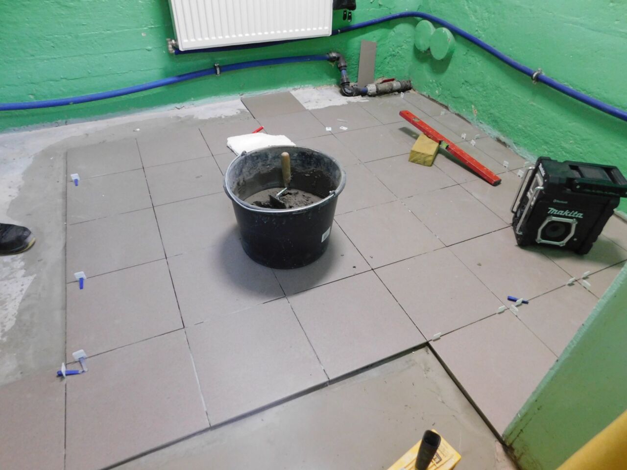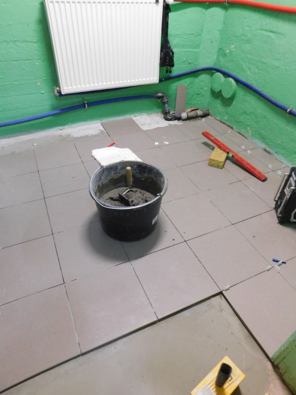Wykorzystując ferie wiosenne rozpoczęliśmy montaż kafelek podłogowych.