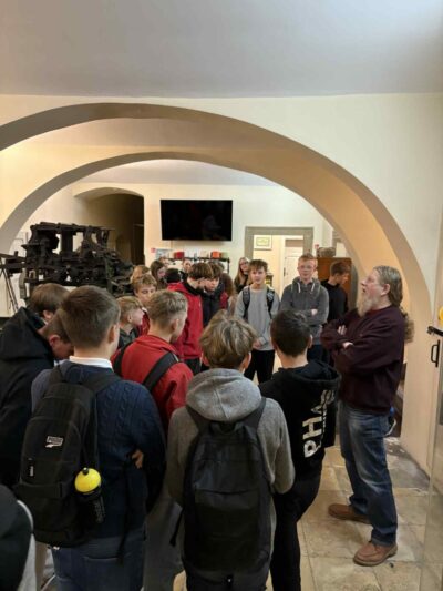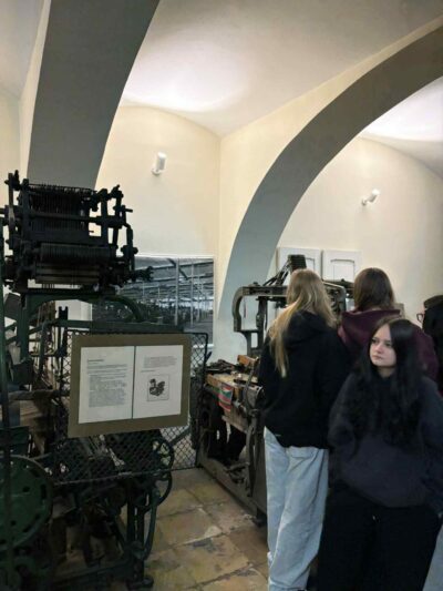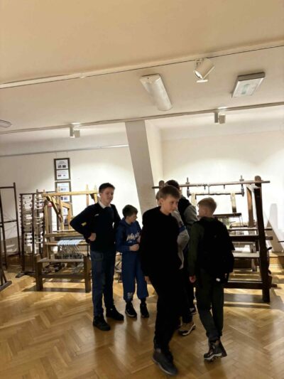 Następnie grupa udała się do Kamiennej Góry, gdzie zwiedzała Muzeum Tkactwa. Uczniowie poznali historię rozwoju tkactwa w regionie oraz znaczenie tej gałęzi przemysłu dla Dolnego Śląska, oglądając ciekawe ekspozycje i zabytkowe urządzenia.