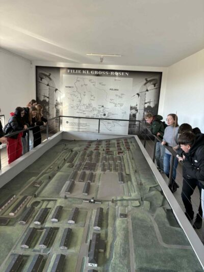 Wycieczka rozpoczęła się o godzinie 7:45 zbiórką pod szkołą, a o 8:00 uczestnicy wyruszyli w kierunku Rogoźnicy. W godzinach 9:00–10:30 uczniowie zwiedzali teren byłego niemieckiego nazistowskiego obozu koncentracyjnego Gross-Rosen. Wizyta miała charakter edukacyjny i refleksyjny – była ważną lekcją historii oraz okazją do zadumy nad losami ofiar i znaczeniem pamięci historycznej.
