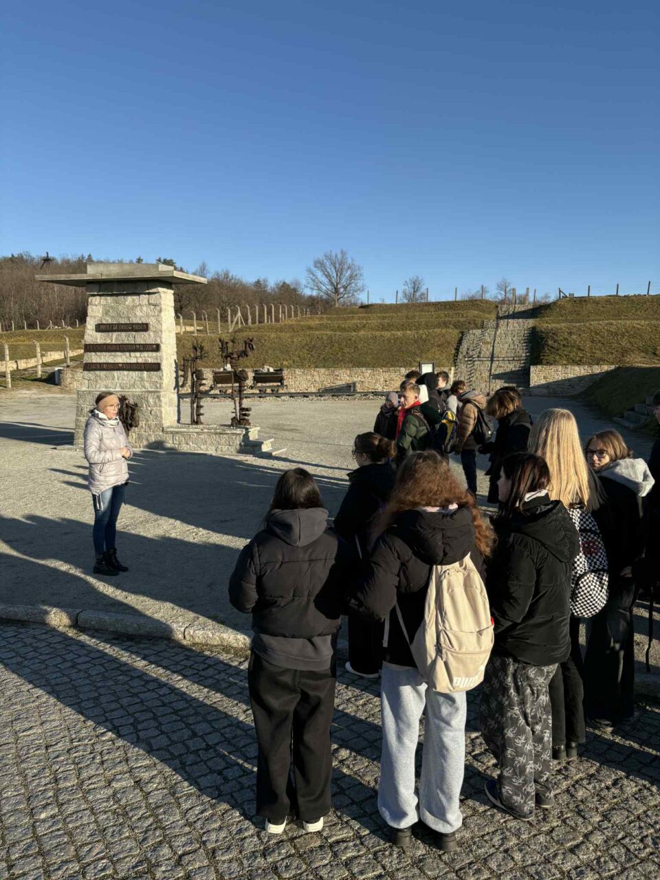 Wycieczka rozpoczęła się o godzinie 7:45 zbiórką pod szkołą, a o 8:00 uczestnicy wyruszyli w kierunku Rogoźnicy. W godzinach 9:00–10:30 uczniowie zwiedzali teren byłego niemieckiego nazistowskiego obozu koncentracyjnego Gross-Rosen. Wizyta miała charakter edukacyjny i refleksyjny – była ważną lekcją historii oraz okazją do zadumy nad losami ofiar i znaczeniem pamięci historycznej.