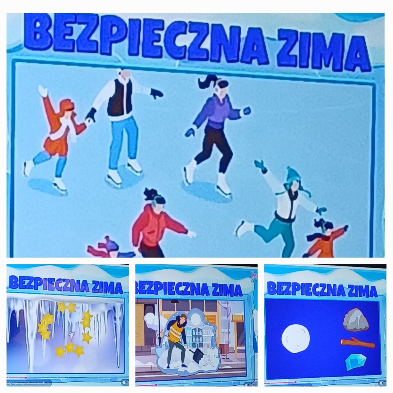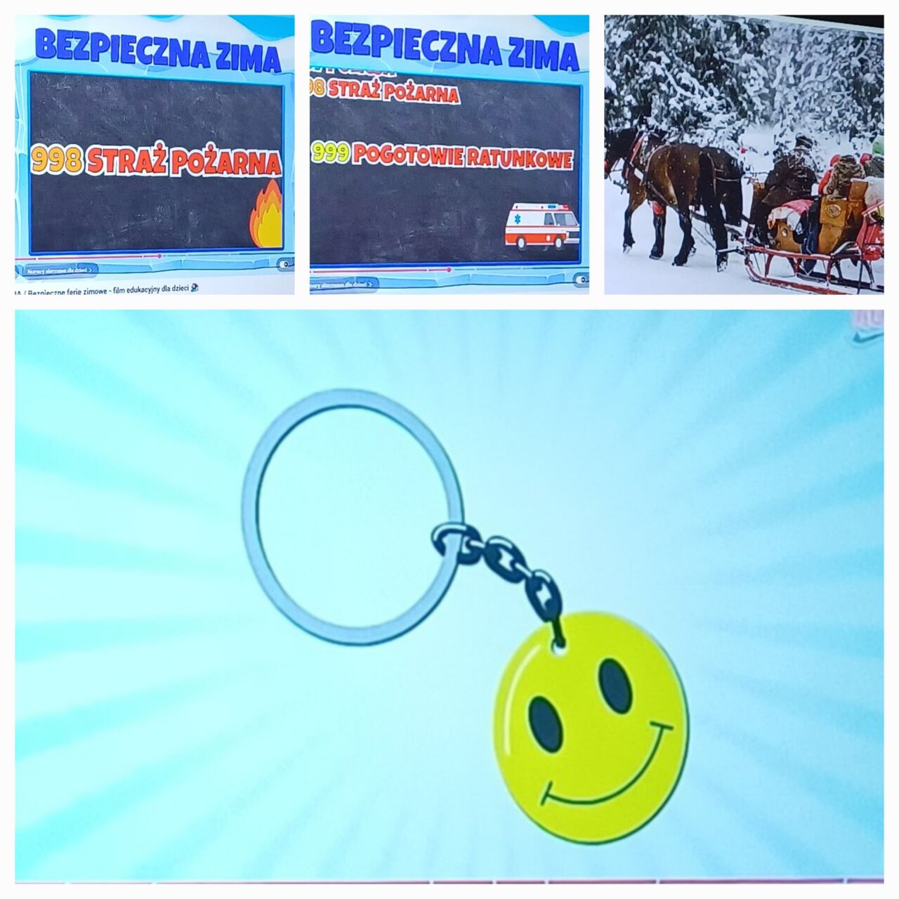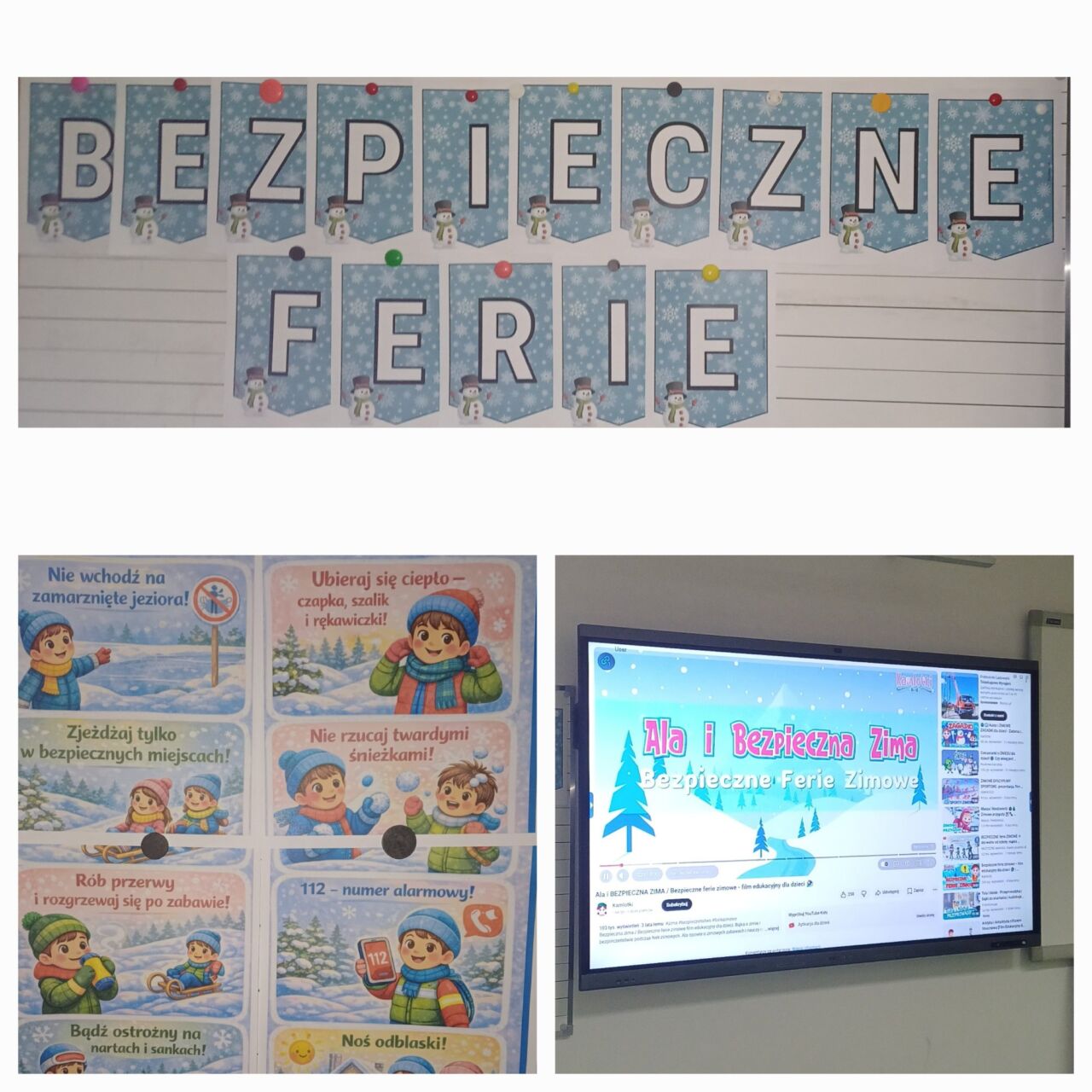 W ramach programu “Witaj w szkole” odbyły się kolejne zajęcia uczniów i przedszkolaków. Tym razem tematem były bezpieczne ferie. Dzieci obejrzały film edukacyjny “Ania i bezpieczne ferie”. Rozwiązywały wspólnie quiz – starsze dzieci czytały pytania i możliwe odpowiedzi, a przedszkolaki wybierały prawidłowa odpowiedź.KW kolejnym etapem było zilustrowanie zdobytej wiedzy.
